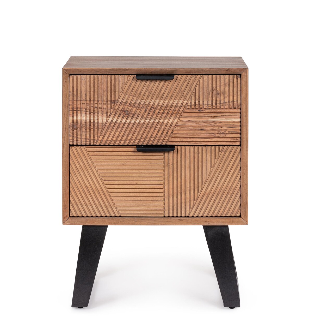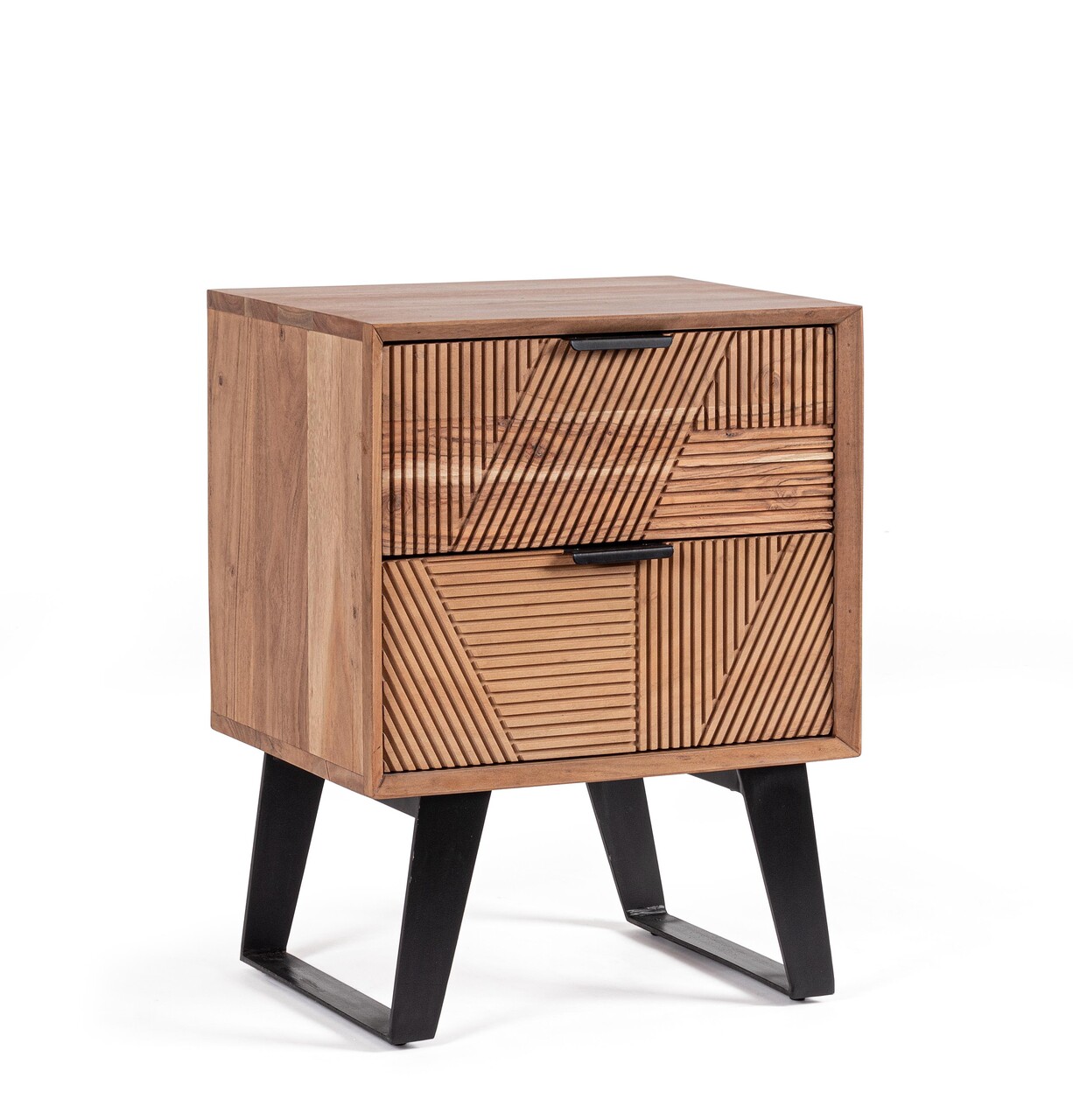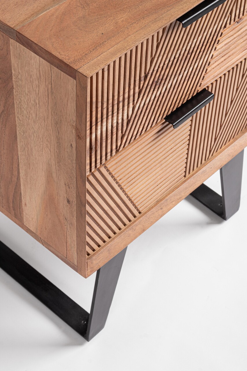 MentiuniStructura din lemn de salcam, spatare si partea de jos a sertarelor din placaj. Partea din fata a sertarelor incrustata si realizata manual. Finisaj de protectie acrilic. Manere si picioare din otel.Produsul necesita asamblarea picioarelor.