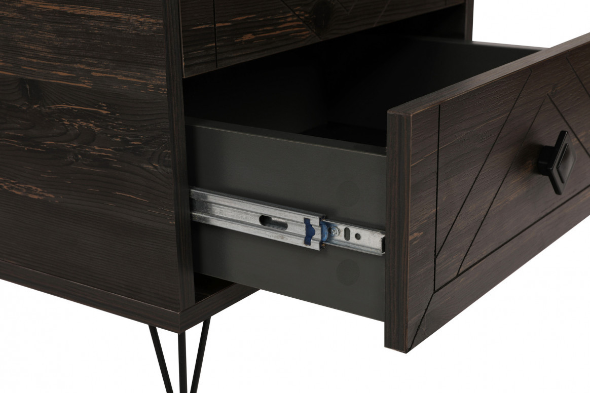 100% PAL Laminat Grosime: 18 mm Picioare metalice Latime: 50 cm Inaltime: 55 cm Adancime: 40 cm Inaltime picior: 15 cm Doui Sertare Lungime sertar: 46 cm Inaltime sertar: 17 cm Numar pachete: 1 Dimensiune Pachet: 44x54x14 cm Greutate totala mobilier: 16 kg