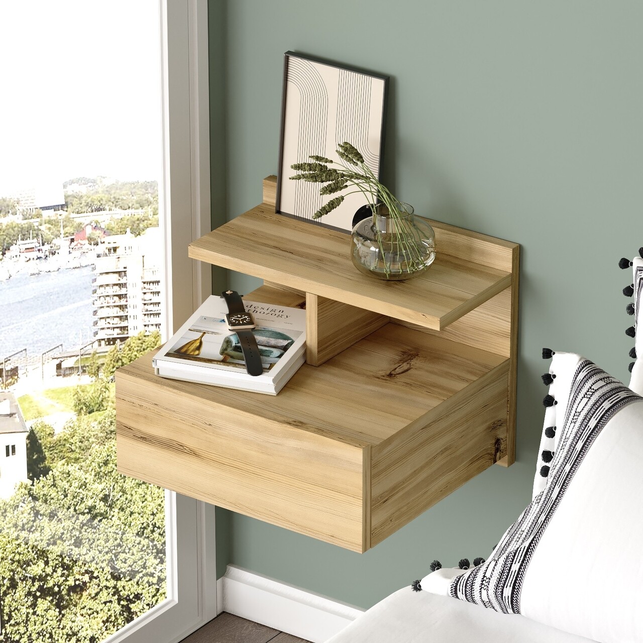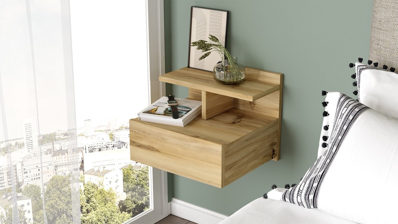 Material: 100% PAL melaminatGrosime: 18 mmDimensiuni sertar: 40 x H14.5 cmLatimea raftului: 40 cmInaltimea raftului: 10.5 cmNoptiera se fixeaza pe pereteNecesita asamblare