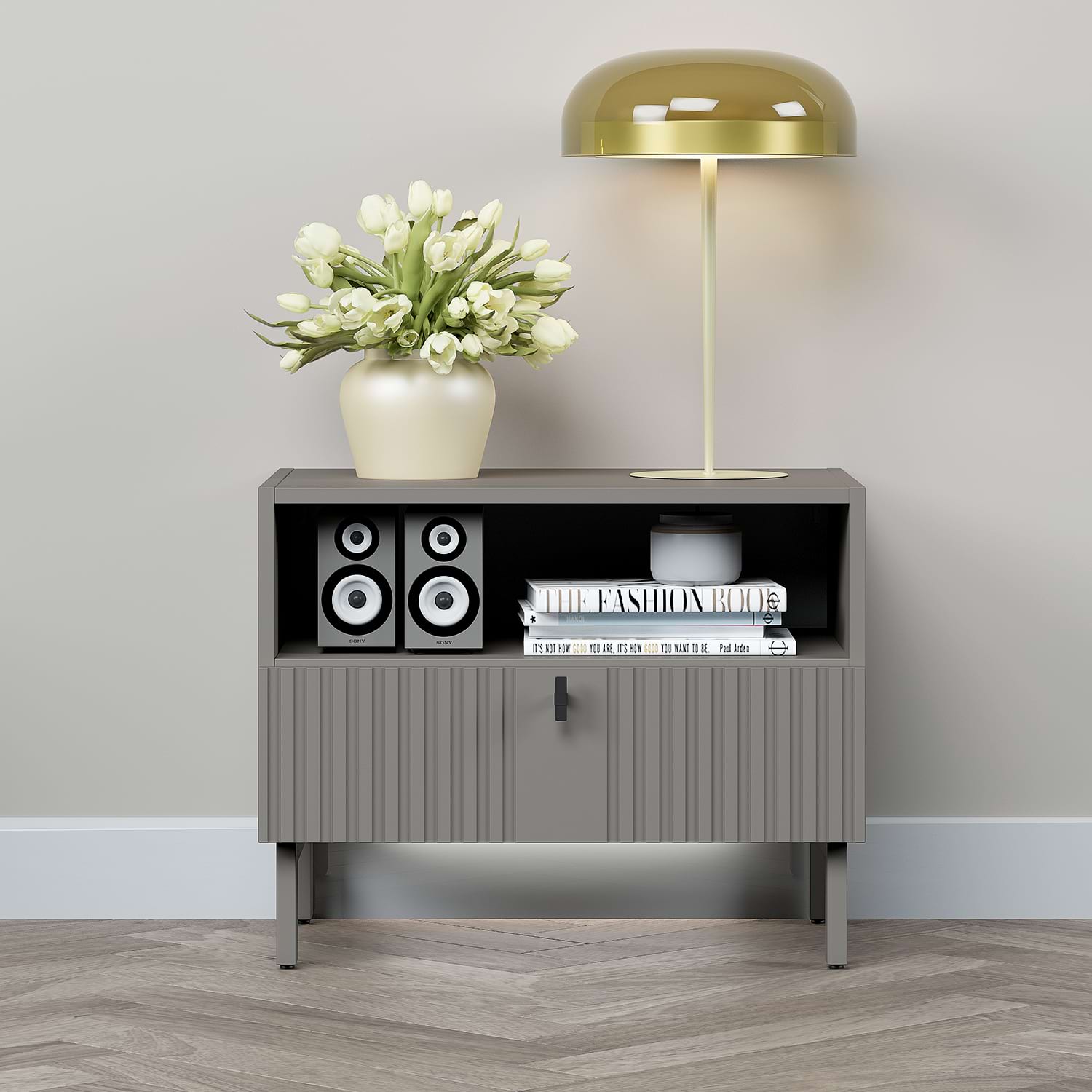 Exclusiv TAMOS! Fabricat in ROMANIA!Noptiera moderna cu front MDF riflat – personalizabila, funcționala si eleganta!Redefineste stilul dormitorului tau cu o piesa de mobilier ce imbina designul contemporan cu funcționalitatea si calitatea materialelor! Noptiera noastra cu front din MDF frezat tip riflaj si finisaj vopsit gri piatra aduce o nota sofisticata in orice incapere. Caracteristici + Configurare flexibilaCarcasa solida din PAL de 16 mm – Durabila si stabila, in nuanțe neutre usor de integrat.Asamblare un sistem rastex/cama si cepi de lemnPFL inserat in nut pentru un plus de rezistențaSertare cu glisare soft-close – Inchidere silențioasa si confort zilnic.Glisiere cu bile Hafele Matrix BB S30, cu extragere totala si amortizare integrata (lungime 35cm)Picioare metalice cu reglaj de inalțime (13-14 cm) – Stabilitate pe orice suprafața, design elegant, culoare la alegere.Butoni metalici Made in Italy – Detaliu sofisticat, nu plastic!Configurație flexibila:– Culoare fronturi, butoni si picioare la alegere– Opțiune suspendare pe perete– Opțional: iluminare LED ambientala pentru un efect wow! Dimensiunilungime: 60cmlatime: 42cminaltime (fara picioare): 35cminaltime (cu picioare reglabile): 48 – 50cm MaterialeCarcasa – PAL melaminat Gri Piatra U727 ST9 Egger 16mmFronturi – MDF 16mm frezat tip riflaj R1, vopsit mat Gri PiatraPicioare metalice 40x20mm, vopsiteDe ce sa alegi aceasta noptiera?Design personalizabil: Se potriveste perfect stilului tau – alege nuanțele care completeaza decorul dormitorului.Materiale premium: Detaliile fac diferența – de la fronturile riflate la butonii metalici.Funcționalitate maxima: Sertarele spațioase cu soft-close, picioarele reglabile si opțiunea de suspendare o fac potrivita pentru orice nevoie.Montaj usor si livrare rapida. Garantie producator 24 luni Livrare GRATUITA in toata Romania…