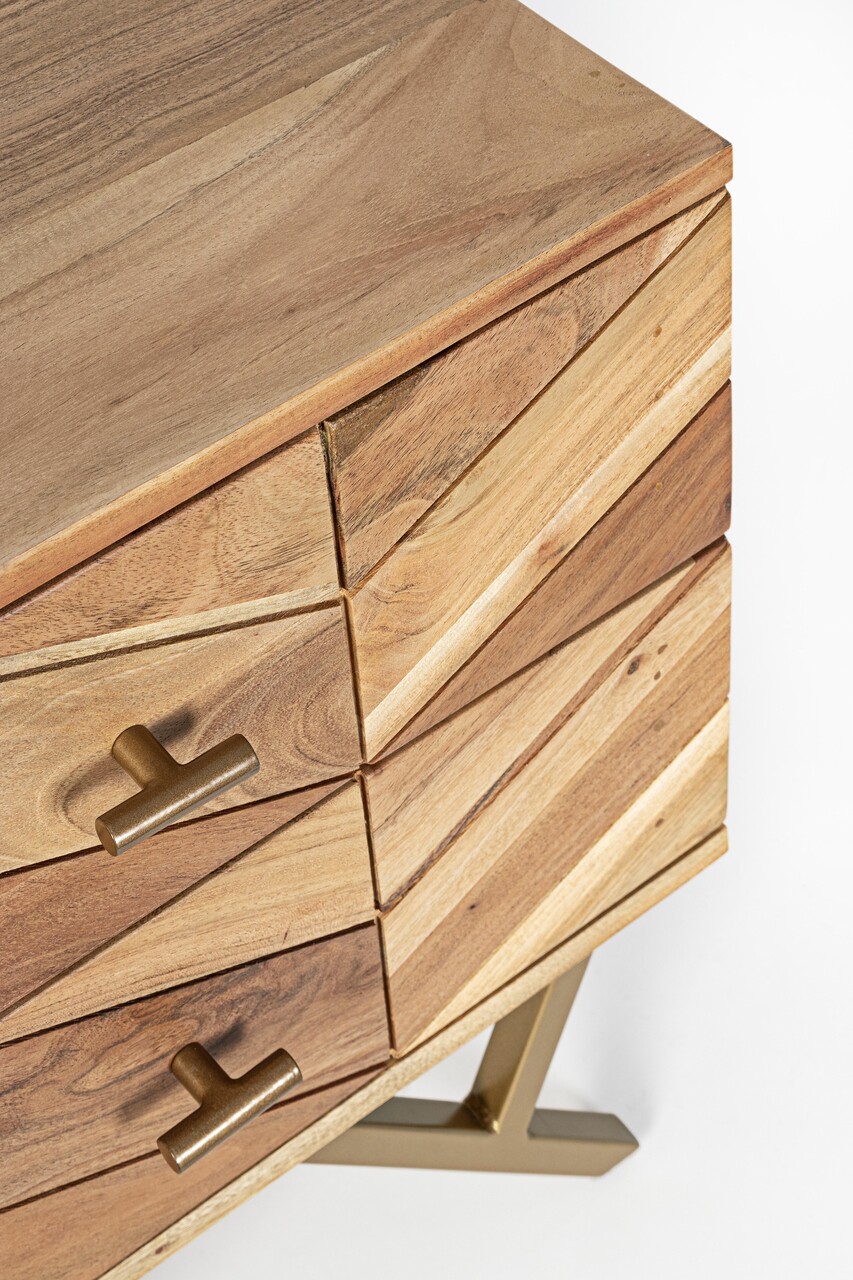 MentiuniCadru din lemn de salcam, spate si sertare interioare din placaj.Finisaj cu vopsea poliuretanica.Picioare de otel acoperit cu pulbere epoxidica.Produsul necesita asamblarea picioarelor.