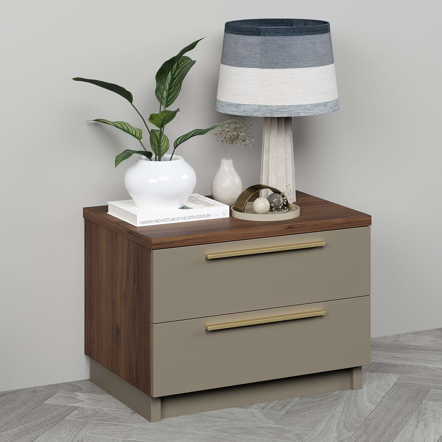 Noptiera SERENA 60×42, H44, 2S, Nuc Warmia, Gri Piatra – Soliditate si eleganta clasica pentru casa ta!Noptiera TV SERENA este alegerea perfecta pentru cei care isi doresc un mobilier solid, construit sa reziste in timp si sa ofere un aspect rafinat, cu linii clasice reinterpretate modern. Realizata din materiale de calitate superioara, aceasta comoda impresioneaza prin stabilitate, detalii atent lucrate si functionalitate fara compromisuri.Puncte forte:Constructie robusta: PAL melaminat de grosime 16 si 25 mm, cu cant ABS de 1 mm pentru rezistenta sporita.Stabilitate perfecta: Picioare metalice reglabile Hafele, cu reglaj din interior, ce asigura o asezare corecta pe orice tip de pardoseala.Manere metalice de calitate: Sertarele sunt prevazute cu manere metalice elegante (negru sau auriu), ce adauga o nota clasica si durabilitate.Mecanisme premium: Sertare cu sisteme de inchidere soft Hafele – silentioase, rezistente, pentru o utilizare indelungata si confortabila.elementele de feronerie Hafele cu functie de inchidere soft asigura ca sertarele se inchid linistit si usor. glisiere cu bile Hafele Matrix BB S30, cu extragere totala si amortizare integrataRafinament si prospetime cu Nuc Warmia si Gri PiatraComoda SERENA in varianta Nuc Warmia combinat cu Gri Piatra aduce impreuna caldura naturala a lemnului cu stralucirea si luminozitatea albului. Este alegerea ideala pentru cei care vor sa creeze un spatiu primitor, cu accente elegante, pastrand totodata un aspect proaspat si curat. Nuanta de nuc scoate in evidenta detaliile clasice, iar finisajul alb ofera un plus de rafinament, potrivindu-se atat in decoruri traditionale, cat si moderne sau scandinave. Dimensiunilungime: 60cmlatime: 42cminaltime: 44cm MaterialeCarcasa – PAL melaminat Nuc Warmia Egger 16mmFronturi – PAL melaminat Gri Piatra 16mmPicioruse metalice reglabile 60mmDe ce sa alegi aceasta noptiera?Design personalizabil: Se potriveste perfect stilului tau – alege nuanțele care completeaza decorul dormitorului.Materiale rezistente si intretinere usoaraFuncționalitate maxima: Sertarele spațioase cu soft-close, picioarele reglabile o fac potrivita pentru orice nevoie.Montaj usor si livrare rapida. Garantie producator 24 luni Livrare GRATUITA in toata Romania…