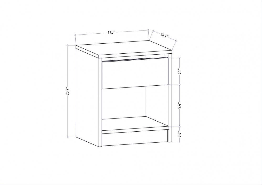 100% PAL Laminat Grosime: 18 mm Latime: 44,6 cm Adancime: 35,9 cm Inaltime: 52,8cm Numar pachete: 1 Dimensiune Pachet: 41x59x15 cm Greutate totala mobilier: 13 kg