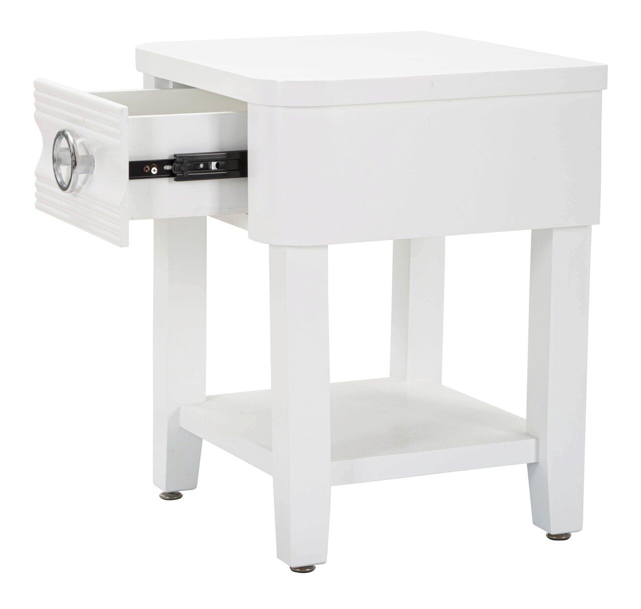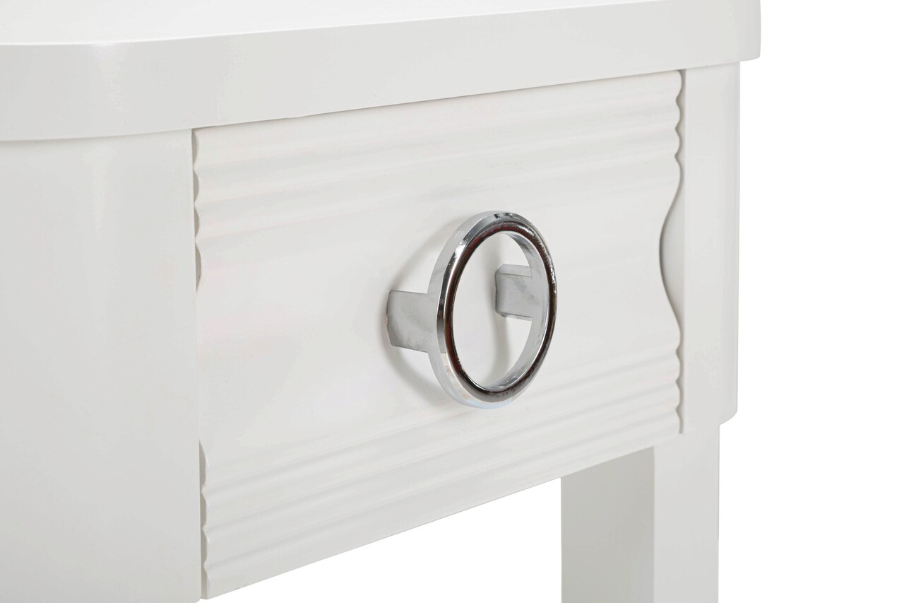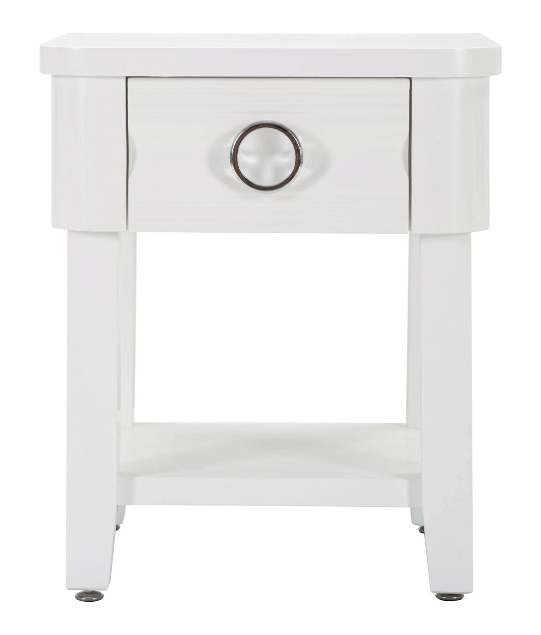 Noptiera cu sertar si raft, cu manopera simpla si linii elegante. Dimensiuni sertar: 21 x 28 x 11 cm. Distanta dintre raft si setar: 25 cm. Compozitie material: lemn de brad, MDF, metal.