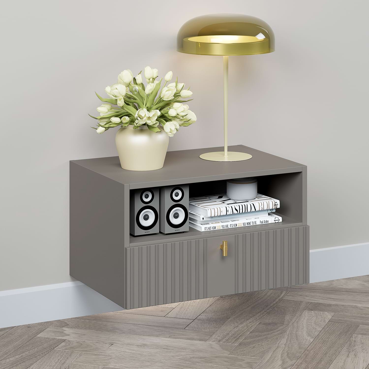 Exclusiv TAMOS! Fabricat in ROMANIA!Noptiera suspendata cu front MDF riflat – personalizabila, funcționala si eleganta!Redefineste stilul dormitorului tau cu o piesa de mobilier ce imbina designul contemporan cu funcționalitatea si calitatea materialelor! Noptiera noastra cu front din MDF frezat tip riflaj si finisaj vopsit gri piatra aduce o nota sofisticata in orice incapere. Caracteristici + Configurare flexibilaCarcasa solida din PAL de 16 mm – Durabila si stabila, in nuanțe neutre usor de integrat.Asamblare un sistem rastex/cama si cepi de lemnPFL inserat in nut pentru un plus de rezistențaSertare cu glisare soft-close – Inchidere silențioasa si confort zilnic.Glisiere cu bile Hafele Matrix BB S30, cu extragere totala si amortizare integrata (lungime 35cm)Sistem de suspendare dulap cu reglaj – Stabilitate pe orice perete!Sistem suspendare dulap Hafele capacitate portanta 150 kg/perecheButoni metalici Made in Italy – Detaliu sofisticat, nu plastic!Configurație flexibila:– Culoare fronturi, butoni si picioare la alegere – Opțiune suspendare pe perete – Opțional: iluminare LED ambientala pentru un efect wow! Dimensiunilungime: 60cmlatime: 42cminaltime: 35cm MaterialeCarcasa – PAL melaminat Gri Piatra U727 ST9 Egger 16mmFronturi – MDF 16mm frezat tip riflaj R1, vopsit mat Gri PiatraDe ce sa alegi aceasta noptiera?Design personalizabil: Se potriveste perfect stilului tau – alege nuanțele care completeaza decorul dormitorului.Materiale premium: Detaliile fac diferența – de la fronturile riflate la butonii metalici.Funcționalitate maxima: Sertarele spațioase cu soft-close, picioarele reglabile si opțiunea de suspendare o fac potrivita pentru orice nevoie.Montaj usor si livrare rapida. Garantie producator 24 luni Livrare GRATUITA in toata Romania…