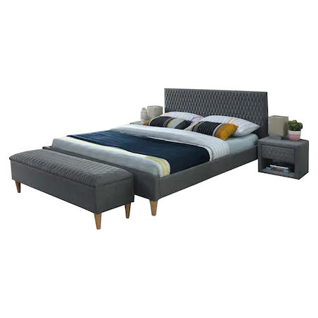 Pretul afisat include doar patul salteaua si somiera. Elementele de decor cat si tamburetul nu sunt incluse in pretul afisat. CARACTERISTICI GENERALE Tip produs Pat Tip pat Standard Dimensiune pat Dublu Utilizat pentru Dormitor Stil Modern Continut pachet 1 x Pat Culoare Gri DETALII MATERIAL Material Lemn DIMENSIUNI Dimensiune (cm) 160 x 200