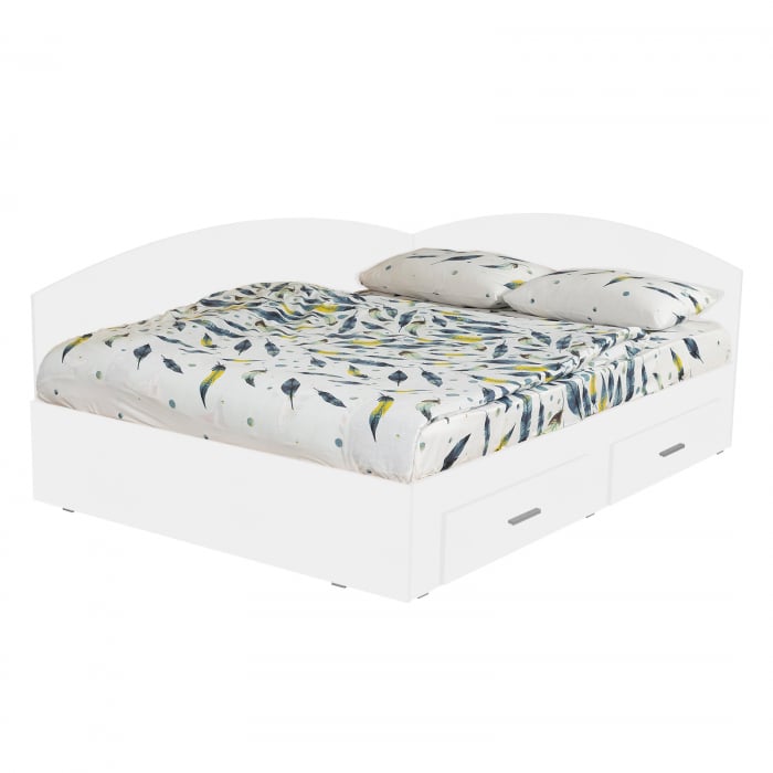 Pat Colt Alma 180×200 cm, cu 2 sertare laterale pe role, colt interschimbabil, alb