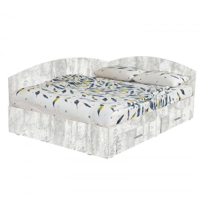 Pat Colt Alma 180×200 cm, cu 2 sertare laterale pe role, colt interschimbabil, pin antichizat