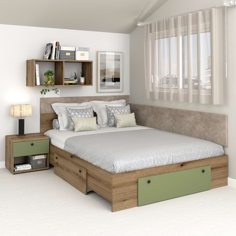 Pat colt AMBRO, 160×200, 2 sertare, Stejar, Pesto