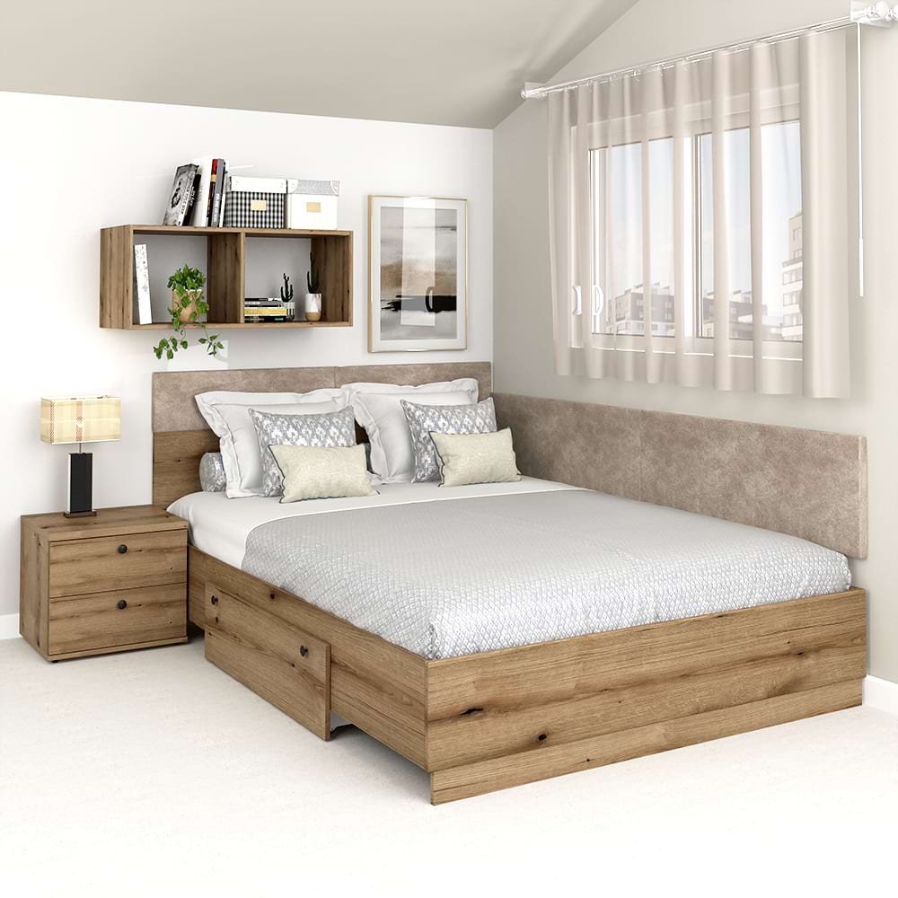 Patul de colt AMBRO, 160x200cm cu sertar lateral si suport saltea FORTE inclus, realizat din Stejar adauga un plus de estetica si functionalitate oricarei camere.Exclusiv Tamos! Pret de producator, livrare rapida si Gratuita! Caracteristici si avantajeMobilier kit, se livreaza demontat, ambalat in cutii de carton. Kitul contine schita montaj, feronerie, certificat garantie si conformitateSuport saltea FORTE inclus. Suportul de saltea este realizat din suport susutinere metalic si elemente de PAL asezate la o distanta de aerisire de 3 cm.Suport de Saltea FORTE:Aerisire Optimizata – Elementele din PAL sunt asezate la o distanta de aerisire de 3 cm, asigurand o ventilare corespunzatoare atat a patului, cat si a saltelei. Aceasta caracteristica este esentiala pentru mentinerea unui mediu sanatos de somn, prevenind acumularea de umiditate si mucegaiRezistenta si Durabilitate la un pret exceptional – suportul de saltea FORTE este compus dintr-un lonjeron metalic robust si elemente din PAL dispuse strategic pentru a oferi o rezistenta superioara. Structura metalica asigura stabilitatea patului, eliminand riscul de deformare in timp, ceea ce se traduce intr-o durata de viata semnificativ imbunatatita.Lipsa Zgomotului – Construcția bine gandita a acestui sistem elimina orice scartait sau sunet deranjant, oferind un somn linistit si confortabil in fiecare noapte. Lonjeronul metalic este solid prins pe structura patului si se sprijina pe pardoseala pe doua picioare reglabile cu talpa PVC. Dimensiuni pat AMBROPat AMBRO 160x200cmDimensiuni interioare: 161x201cmDimensiuni exterioare: 164x205cmInaltime tablie mare: 89cmInaltime cadru pat: 37cmPlaca tapitata H = 36cm MaterialePAL dublu melaminat 16mm Stejar, AntracitCant ABS 1 mm (carcasa)Laterala perete tapitata cu piele eco texturata Bej Garantie producator 24 luni Transport GRATUIT in toata tara*NOTA* Imaginile afisate sunt doar pentru scopuri ilustrative. Dimensiunile reale ale produsului pot diferi usor fata de cele prezentate. De asemenea, culorile pot varia in functie de setarile dispozitivului dvs. Va rugam sa verificati specificatiile produsului pentru detalii exacte,*Noptierele, dulapul suspendat, salteaua de pat, lenjeria si celelalte acesorii din imagine nu sunt incluse in pret….