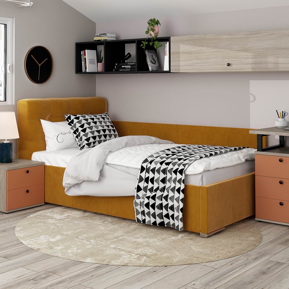 <p>Pat de colt tapitat copii GEORGIA din catifea Galben Mustar, dimensiuni 90x200cm sau 120×200 cm, cu somiera rabatabila si lada de depozitare – raport excelent Calitate / Pret!<br></p><p><span style="color: rgb(36, 64, 97);"></span></p><p>Rezistenta acestui pat nu limiteaza doar la utilizarea de catre copii, patul GEORGIA este o solutie excelenta chiar si pentru adulti.</p><p><b><span style="color: rgb(36, 64, 97);">Fabricat de TAMOS | Livrare Gratuita | Garantie Producator |</span></b></p><p><img src="https://www2.tamos.ro/images/companies/1/Icons%20TAMOS/untitled%20folder/Produs%20configurabil%2050%20opt.png?1663680883771" alt="Pat configurabil" title="Pat configurabil" style="cursor: pointer;"> <span style="color: rgb(36, 64, 97);"><b>Pat configurabil</b></span></p><ul><li>configurezi husa (catifea, piele ecologica, stofa, piele texturata)</li><li>configurezi dimensiuni</li><li>configurezi complemente din acelasi material (noptiere, taburete si lazi depozitare)</li></ul><figure><img src="https://www2.tamos.ro/images/companies/1/Icons%20TAMOS/untitled%20folder/Mobilier%20kit%2050%20opt.png?1663680993744" alt="Avantaje" title="Avantaje" style="cursor: pointer;"> <b><span style="color: rgb(36, 64, 97);">Avantaje</span></b></figure><ul><li>Mobilier kit, se livreaza demontat, ambalat in cutii de carton</li><li>Kitul contine schita montaj, feronerie, certificat garantie si conformitate</li><li>Patul se poate amplasa pe orice colt al camerei</li><li>Kit laterale tapitate pat – din 2 placi tapitate, cu prindere pe perete (<b>INCLUS</b>) sau cu prindere pe laterala patului cu sisteme metalice (OPTIONAL-Contra cost)</li><li>Sistemul de sustinere saltea este compus din somiera metalica cu traverse elastice din lemn stratificat fag.</li><li>Pistoane gaz (amortizoare)</li><li>Lada de depozitare cu sustinere metalica si suport din PAL melaminat Alb</li><li>Cusaturi de tapiterie cu banda de intarire</li><li>Picioare cromate</li></ul><p><img src="https://www2.tamos.ro/images/companies/1/Icons%20TAMOS/untitled%20folder/Dimensiuni%20pat%2050%20opt.png?1663681068882" alt="Dimensiuni" title="Dimensiuni" style="cursor: pointer;"> <b><span style="color: rgb(36, 64, 97);">Dimensiuni</span></b></p><ul><li>90×200 cm – dimensiuni exterioare: Lungime 220cm x latime 100cm x Inaltime 100cm</li><li>120×200 cm – dimensiuni exterioare: Lungime 220cm x latime 130cm x Inaltime 100cm</li></ul><p><img src="https://www2.tamos.ro/images/companies/1/Icons%20TAMOS/untitled%20folder/Materiale%2050%20opt.png?1663681175077" alt="Materiale" title="Materiale" style="cursor: pointer;"> <b><span style="color: rgb(36, 64, 97);">Materiale</span></b></p><ul><li>Catifea Galben Mustar</li><li>Somiera lamele fag cu rama metalica</li><li>Balamale si amortizor cu gaz</li><li>Fund pat pentru depozitare – PAL melaminat Alb 10mm</li><li>Structura metalica depozitare</li></ul><p><img src="https://www2.tamos.ro/images/companies/1/Icons%20TAMOS/untitled%20folder/Garantie%2050%20opt.png?1663681248541" alt="Garantie 24 luni" title="Garantie 24 luni" style="cursor: pointer;"> <b><span style="color: rgb(36, 64, 97);">Garantie Producator 24 luni</span></b></p><figure><img src="https://www2.tamos.ro/images/companies/1/Icons%20TAMOS/untitled%20folder/Livrare%20gratuita%2050%20opt.png?1663681328390" alt="Livrare Gratuita" title="Livrare Gratuita" style="cursor: pointer;"> <b><span style="color: rgb(36, 64, 97);">Livrare Gratuita</span></b></figure><p>*NOTA</p><ul><li>Poza cu caracter informativ. In pretul patului este inclus suportul de saltea ( somiera metalica ).</li><li>Salteaua de pat, noptiera, lenjeria si celelalte accesorii din imagine nu sunt incluse in pret.</li></ul><p></p>