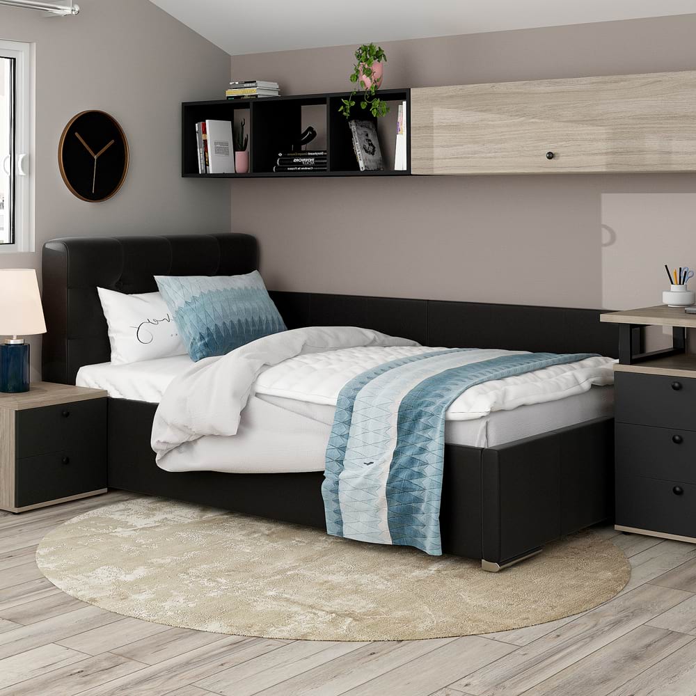 <p>Pat de colt tapitat copii GEORGIA din Piele ecologica Neagra, dimensiuni 90x200cm sau 120×200 cm, cu somiera rabatabila si lada de depozitare – raport excelent Calitate / Pret!<br></p><p><span style="color: rgb(36, 64, 97);"></span></p><p>Rezistenta acestui pat nu limiteaza doar la utilizarea de catre copii, patul GEORGIA este o solutie excelenta chiar si pentru adulti.</p><p><b><span style="color: rgb(36, 64, 97);">Fabricat de TAMOS | Livrare Gratuita | Garantie Producator |</span></b></p><p><img src="https://www2.tamos.ro/images/companies/1/Icons%20TAMOS/untitled%20folder/Produs%20configurabil%2050%20opt.png?1663680883771" alt="Pat configurabil" title="Pat configurabil" style="cursor: pointer;"> <span style="color: rgb(36, 64, 97);"><b>Pat configurabil</b></span></p><ul><li>configurezi husa (catifea, piele ecologica, stofa, piele texturata)</li><li>configurezi dimensiuni</li><li>configurezi complemente din acelasi material (noptiere, taburete si lazi depozitare)</li></ul><figure><img src="https://www2.tamos.ro/images/companies/1/Icons%20TAMOS/untitled%20folder/Mobilier%20kit%2050%20opt.png?1663680993744" alt="Avantaje" title="Avantaje" style="cursor: pointer;"> <b><span style="color: rgb(36, 64, 97);">Avantaje</span></b></figure><ul><li>Mobilier kit, se livreaza demontat, ambalat in cutii de carton</li><li>Kitul contine schita montaj, feronerie, certificat garantie si conformitate</li><li>Patul se poate amplasa pe orice colt al camerei</li><li>Kit laterale tapitate pat – din 2 placi tapitate, cu prindere pe perete (<b>INCLUS</b>) sau cu prindere pe laterala patului cu sisteme metalice (OPTIONAL-Contra cost)</li><li>Sistemul de sustinere saltea este compus din somiera metalica cu traverse elastice din lemn stratificat fag.</li><li>Pistoane gaz (amortizoare)</li><li>Lada de depozitare cu sustinere metalica si suport din PAL melaminat Alb</li><li>Cusaturi de tapiterie cu banda de intarire</li><li>Picioare cromate</li></ul><p><img src="https://www2.tamos.ro/images/companies/1/Icons%20TAMOS/untitled%20folder/Dimensiuni%20pat%2050%20opt.png?1663681068882" alt="Dimensiuni" title="Dimensiuni" style="cursor: pointer;"> <b><span style="color: rgb(36, 64, 97);">Dimensiuni</span></b></p><ul><li>90×200 cm – dimensiuni exterioare: Lungime 220cm x latime 100cm x Inaltime 100cm</li><li>120×200 cm – dimensiuni exterioare: Lungime 220cm x latime 130cm x Inaltime 100cm</li></ul><p><img src="https://www2.tamos.ro/images/companies/1/Icons%20TAMOS/untitled%20folder/Materiale%2050%20opt.png?1663681175077" alt="Materiale" title="Materiale" style="cursor: pointer;"> <b><span style="color: rgb(36, 64, 97);">Materiale</span></b></p><ul><li>Piele ecologica Neagra</li><li>Somiera lamele fag cu rama metalica</li><li>Balamale si amortizor cu gaz</li><li>Fund pat pentru depozitare – PAL melaminat Alb 10mm</li><li>Structura metalica depozitare</li></ul><p><img src="https://www2.tamos.ro/images/companies/1/Icons%20TAMOS/untitled%20folder/Garantie%2050%20opt.png?1663681248541" alt="Garantie 24 luni" title="Garantie 24 luni" style="cursor: pointer;"> <b><span style="color: rgb(36, 64, 97);">Garantie Producator 24 luni</span></b></p><figure><img src="https://www2.tamos.ro/images/companies/1/Icons%20TAMOS/untitled%20folder/Livrare%20gratuita%2050%20opt.png?1663681328390" alt="Livrare Gratuita" title="Livrare Gratuita" style="cursor: pointer;"> <b><span style="color: rgb(36, 64, 97);">Livrare Gratuita</span></b></figure><p>*NOTA</p><ul><li>Poza cu caracter informativ. In pretul patului este inclus suportul de saltea ( somiera metalica ).</li><li>Salteaua de pat, noptiera, lenjeria si celelalte accesorii din imagine nu sunt incluse in pret.</li></ul><p><br></p>