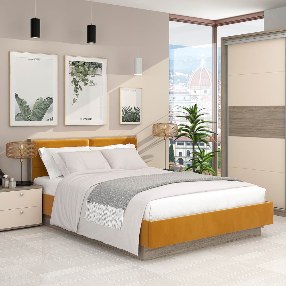 Exclusiv | Pret Fabrica | Livrare Gratuita din Stoc!Patul matrimonial PRIMAVERA 160×200, cu tablie si rama superioara pat tapitate, suport saltea, realizat din PAL Oak si tapitat cu catifea Galben Mustar este un produs original TAMOS.Cadul patului contine Suportul de saltea FORTE. Componente Pat PRIMAVERA 160x200Cadru pat LINEA 160 cu suport saltea inclusTablia pat PRIMAVERA 160, tapitata AVANTAJEMobilier kit, se livreaza demontat, ambalat in cutii de cartonFiecare componenta a patului este ambalata individual – usurinta in asamblareCompletarea cu diverse componente ale colectiei LineaTablia patului este tapitata cu stofa catifea Galben MustarColturile patului sunt retrase in interior pentru evitarea accidentarilorRama superioara tapitata cu catifea Galben MustarSuport saltea FORTE din PAL durFeronerie Hafele – GermaniaCanturi ABS de 0,4 mmCanturi ABS de 2 mm DIMENSIUNI1. Cadru pat LINEA 160Lungime interiora: 200 cmLatime interioara: 160 cmInaltime cadru pat: 35 cmInaltime saltelei incorporata in cadrul patului: 7 cmLungime exteriora: 203,2 cmLatime exterioara: 163,2 cm2. Tablia pat Primavera 160×200, cu elemente tapitateLungime: 163,2 cmLatime: 12 cmInaltime: 96 cm MATERIALEPAL Oak 16mmPAL Oak 25mm Catifea Galben MustarCant ABS 0,4mmCant ABS 1 mmConectori metalici GARANTIE – 24 luni Livrare GRATUITA. Manipularea produsului nu este inclusa, produsul se preia de la masina.*Noptierele, Salteaua de pat, si accesoriile din imagine nu sunt incluse in pret.Recomandare inlatime saltea maximum 23cm….