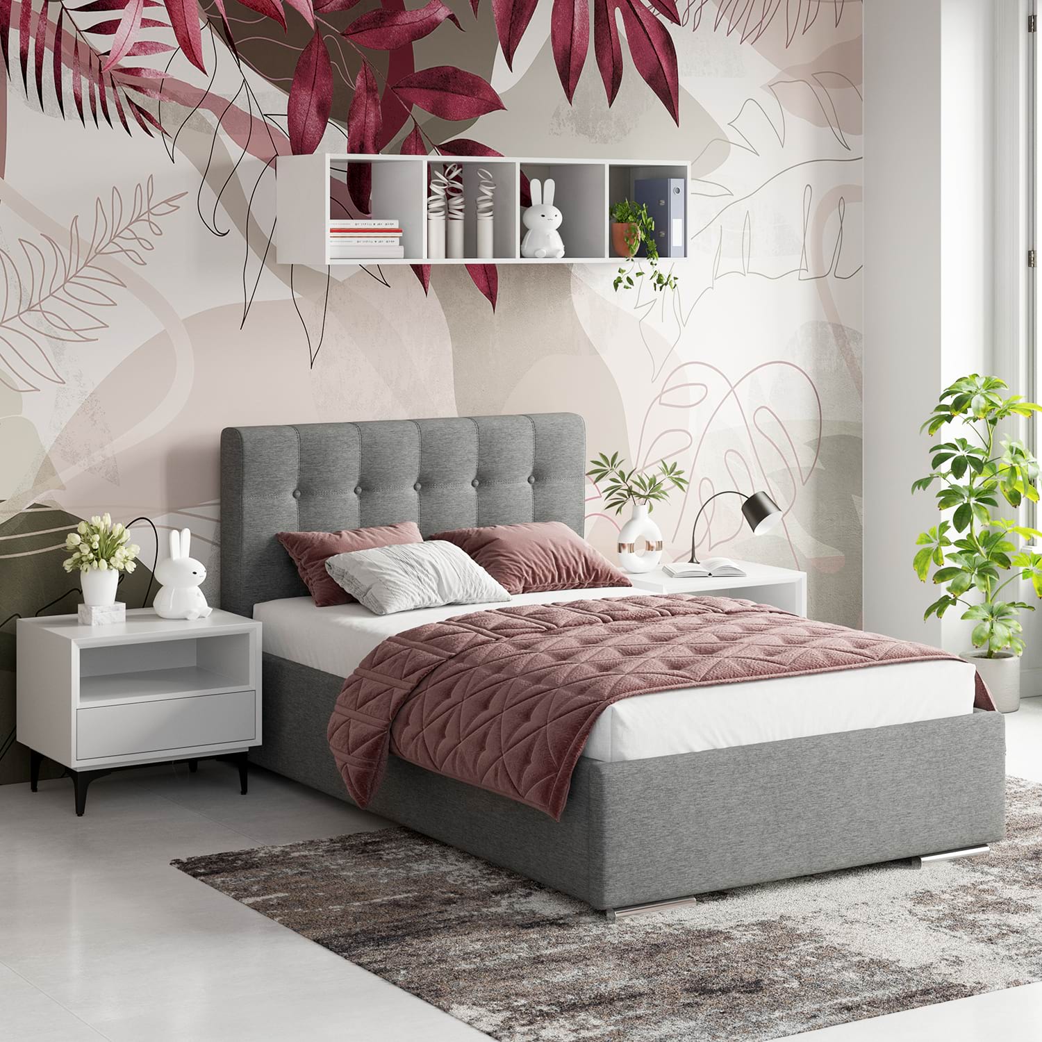 Pat tapitat de o persoana GEORGIA, dimensiuni 120x200cm, H107 cu somiera rabatabila si lada depozitare, husat in stofa Gri V88 are un design modern si elegant pe un cadru robust si bine proiectat. Tablia patului este un element distinctiv, formata din patrate tapitate care adauga un efect vizual interesant si un plus de confort.Patul dispune de o somiera rabatabila, oferind spatiu de depozitare dedesubt, ceea ce il face nu doar estetic placut, ci si practic. Marginile patului sunt bine definite si finisate, contribuind la aspectul sau sofisticat. Exclusiv TAMOS! Pret de producator , livrare rapida si Gratuita ! Configurabilconfigurezi husa (catifea, stofa)configurezi dimensiune pat – 140cm, 160cm, 180cmconfigurezi complemente – asezare pe coltul camerei, saltele, noptiere, comode, dulapuri AvantajeCONFORT – Combinand armonios rigoarea geometrica a tabliei cu formele arcuite pe care le creaza buretele folosit din belsug, patul Georgia da nastere unui stil personal si cald.Incadrandu-se cu succes in orice stil de amenajare, realizeaza combinatii valoroase cu mobilierul din lemn, furniruri sau placaje.FUNCTIONALITATE – Patul tapitat Georgia Clasic contine o somiera metalica ranfortata, compusa din lamele arcuite din fag, montate pe un cadru metalic foarte solid. Sistemul de ridicare compus din balamale si amortizoare cu gaz vin sa completeze fiabilitatea suportului de saltea. Compartimentul de depozitare generos si complet tapitat iti va organiza si iti va sistematiza spatiul din dormitor.REZISTENTA – Pentru o rezistenta fara cusur, am proiectat pentru patul Georgia Clasic un sistem metalic ce sustine fundurile de pat distantate de sol si rigidizeaza cadrul patului. In plus, o bara de rigidizare metalica dispusa transversal sprijina somiera in starea de repaus si impiedica deformarea lateralelor patului in timp. Sistemul permite o aerisire corecta a saltelei si a lucrurilor ce se depoziteaza in lada patului.Mobilier kit, se livreaza demontat, ambalat in cutii de cartonKitul contine schita montaj, feronerie, certificat garantie si conformitateSomiera metalica cu lamele arcuite din fagPistoane cu gaz (amortizoare)Spatiu depozitare sub somiera cu structura metalica, distanta de pardoseala si suport depozitare tapitat integralPicioare cromateCusaturi de tapiterie cu banda de intarire Dimensiuni pat Georgia Clasic 120x200cmDimensiuni interioare: 121x201cmDimensiuni exterioare: 130x217cmInaltime tablie mare: 107cmInaltime cadru pat: 37cmInaltime de la sol: 4cm Texturi / culori disponibileStofa Gri V88 Garantie 24 luni Livrare Gratuita. Manipularea produsului nu este inclusa, produsul se preia de la masina. *NOTA* Imaginile afisate sunt doar pentru scopuri ilustrative. Dimensiunile reale ale produsului pot diferi usor fata de cele prezentate. De asemenea, culorile pot varia in functie de setarile dispozitivului dvs. Va rugam sa verificati specificatiile produsului pentru detalii exacte si sa va asigurati ca este decorul dorit.*Noptiera, salteaua de pat, lenjeria si celelalte acesorii din imagine nu sunt incluse in pret….