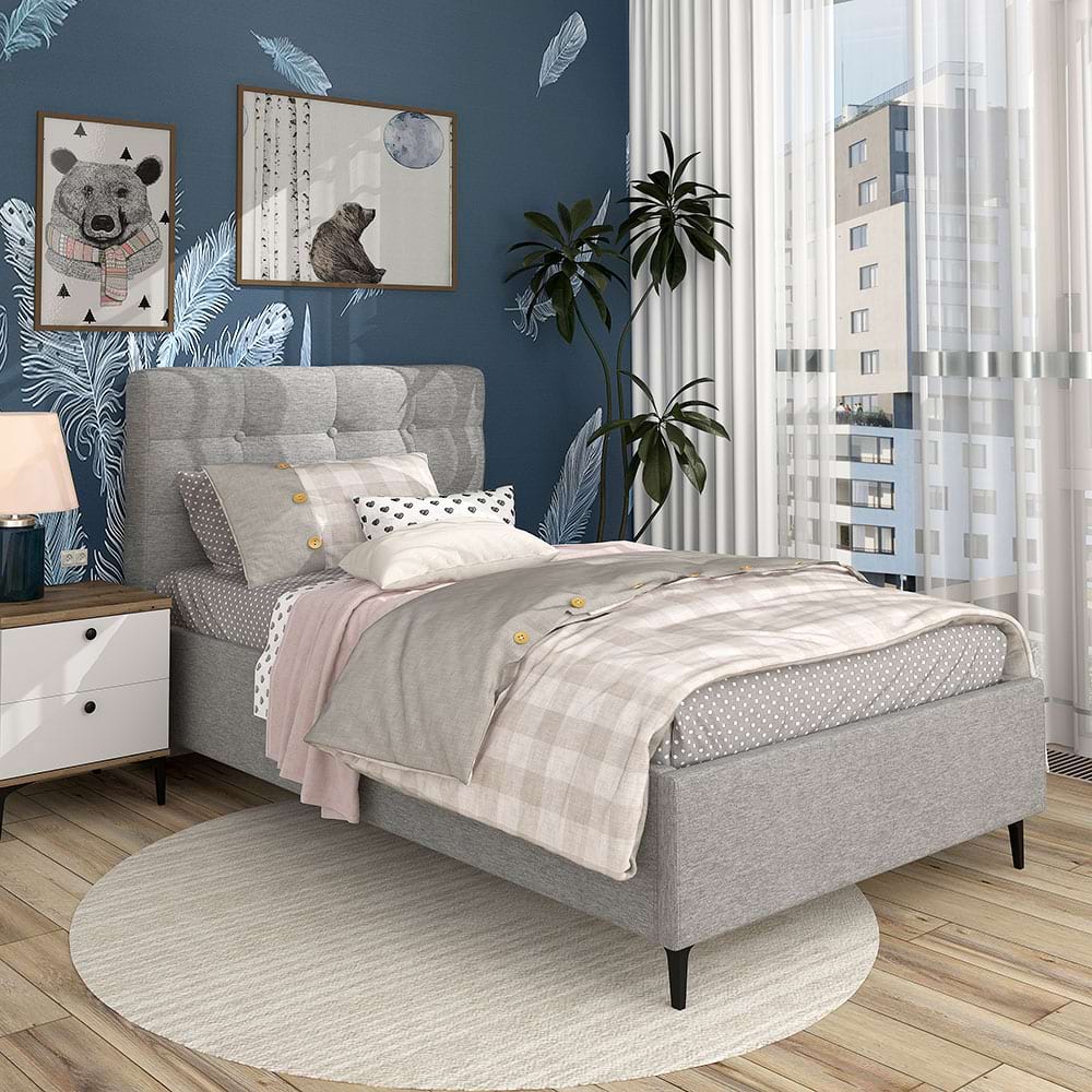 Pat tapitat de o persoana GEORGIA Pro, 120×200, H116, somiera, Stofa Gri V90