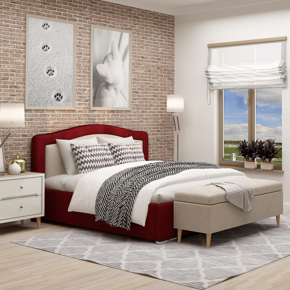 Exclusiv TAMOS! Pret de producator , livrare rapida si Gratuita !Pat matrimonial tapitat DONNA cu somiera rabatabila si spatiu depozitare, catifea Rosu Grena, Bej este fabricat de TAMOS din materiale de calitate, rezistente in timp, in tendinte actuale de design. Pat configurabilconfigurezi husa (piele ecologica, stofa)configurezi dimensiune pat configurezi complemente Produsul contine o somiera metalica ranfortata, compusa din lamele arcuite din fag, montate pe un cadru metalic foarte solid. Sistemul de ridicare compus din balamale si amortizoare cu gaz vin sa completeze fiabilitatea suportului de saltea. Compartimentul de depozitare generos iti va organiza si iti va sistematiza spatiul din dormitor.Pentru o rezistenta fara cusur, am proiectat pentru patul DONNA un sistem metalic ce sustine fundurile de pat distantate de sol si rigidizeaza cadrul patului. In plus, o bara de rigidizare metalica dispusa transversal sprijina somiera in starea de repaus si impiedica deformarea lateralelor patului in timp. Sistemul permite o aerisire corecta a saltelei si a lucrurilor ce se depoziteaza in lada patului.Mobilier kit, se livreaza demontat, ambalat in cutii de cartonKitul contine schita montaj, feronerie, certificat garantie si conformitateSomiera metalica cu lamele arcuite din fagPistoane cu gaz (amortizoare)Spatiu depozitare sub somiera cu structura metalica, distanta de pardoseala si suport depozitare demontabilPicioare cromateCusaturi de tapiterie cu banda de intarireDimensiuni disponibile:Lungime=220cm x latime=150cm x Inaltime=100cm ( dimensiune saltea 200 x 140cm) Texturi / culori disponibileCatifea Rosu Grena si Bej Garantie 24 luni Transport GRATUIT in toata tara . Produsele se preiau de la masina.Imi ridic singur produsele – fara cost suplimentar (Iti pregatim produsele si ti le aducem in cel mai apropiat Punct de Ridicare)Montaj profesionist in Bucuresti-contra cost. Costurile de montaj includ manipularea produsului pentru care se achita acest serviciu.*Salteaua de pat, lada de depozitare Georgia (din fata patului) si accesoriile din imagine nu sunt incluse in pret.Salteaua recomandata pentru acest pat este cea din burete, arcuri cu burete sau combinatie cu memory de 15 – 22 cm (grosime).Alegerea unor saltele cu grosimi mai mari (greutate mare) poate influenta negativ functionarea sistemului de rabatare a somierei.Poza cu careacter informativ. Culorile stofelor pot sa difere in functie de lumina si de obiectiv….