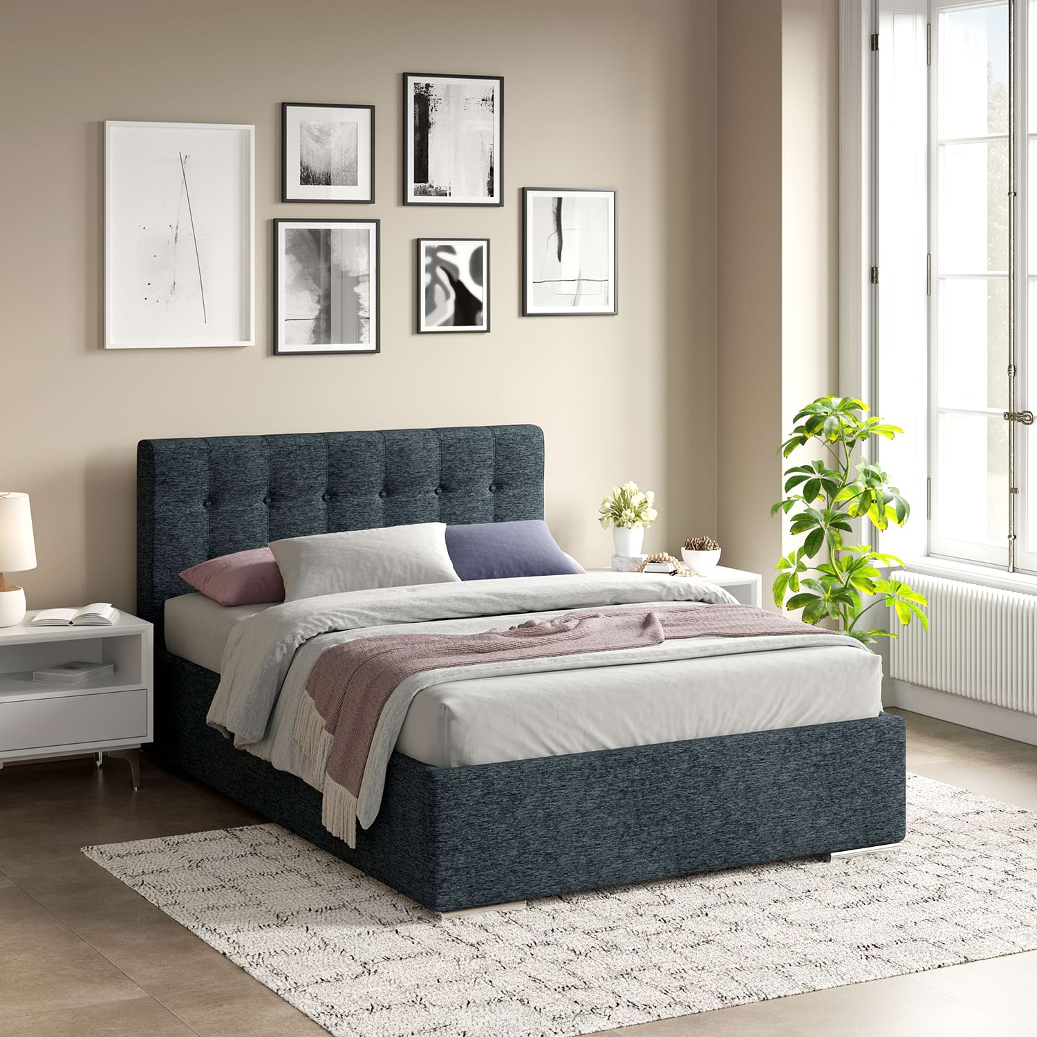 Patul tapitat GEORGIA Clasic, 140×200, H107 cu somiera rabatabila si lada depozitare, husat in stofa Albastru V76 are un design modern si elegant pe un cadru robust si bine proiectat. Tablia patului este un element distinctiv, formata din patrate tapitate care adauga un efect vizual interesant si un plus de confort.Patul dispune de o somiera rabatabila, oferind spatiu de depozitare dedesubt, ceea ce il face nu doar estetic placut, ci si practic. Marginile patului sunt bine definite si finisate, contribuind la aspectul sau sofisticat. Exclusiv TAMOS! Pret de producator , livrare rapida si Gratuita ! Configurabilconfigurezi husa (catifea, stofa)configurezi dimensiune pat – 140cm, 160cm, 180cmconfigurezi complemente – asezare pe coltul camerei, saltele, noptiere, comode, dulapuri AvantajeCONFORT – Combinand armonios rigoarea geometrica a tabliei cu formele arcuite pe care le creaza buretele folosit din belsug, patul Georgia da nastere unui stil personal si cald.Incadrandu-se cu succes in orice stil de amenajare, realizeaza combinatii valoroase cu mobilierul din lemn, furniruri sau placaje.FUNCTIONALITATE – Patul tapitat Georgia Clasic contine o somiera metalica ranfortata, compusa din lamele arcuite din fag, montate pe un cadru metalic foarte solid. Sistemul de ridicare compus din balamale si amortizoare cu gaz vin sa completeze fiabilitatea suportului de saltea. Compartimentul de depozitare generos si complet tapitat iti va organiza si iti va sistematiza spatiul din dormitor.REZISTENTA – Pentru o rezistenta fara cusur, am proiectat pentru patul Georgia Clasic un sistem metalic ce sustine fundurile de pat distantate de sol si rigidizeaza cadrul patului. In plus, o bara de rigidizare metalica dispusa transversal sprijina somiera in starea de repaus si impiedica deformarea lateralelor patului in timp. Sistemul permite o aerisire corecta a saltelei si a lucrurilor ce se depoziteaza in lada patului.Mobilier kit, se livreaza demontat, ambalat in cutii de cartonKitul contine schita montaj, feronerie, certificat garantie si conformitateSomiera metalica cu lamele arcuite din fagPistoane cu gaz (amortizoare)Spatiu depozitare sub somiera cu structura metalica, distanta de pardoseala si suport depozitare tapitat integralPicioare cromateCusaturi de tapiterie cu banda de intarire Dimensiuni pat Georgia Clasic 140x200cmDimensiuni interioare: 141x201cmDimensiuni exterioare: 150x217cmInaltime tablie mare: 107cmInaltime cadru pat: 37cmInaltime de la sol: 4cm Texturi / culori disponibileStofa Albastru V76 Garantie 24 luni Livrare Gratuita. Manipularea produsului nu este inclusa, produsul se preia de la masina. *NOTA* Imaginile afisate sunt doar pentru scopuri ilustrative. Dimensiunile reale ale produsului pot diferi usor fata de cele prezentate. De asemenea, culorile pot varia in functie de setarile dispozitivului dvs. Va rugam sa verificati specificatiile produsului pentru detalii exacte si sa va asigurati ca este decorul dorit.*Noptiera, salteaua de pat, lenjeria si celelalte acesorii din imagine nu sunt incluse in pret….