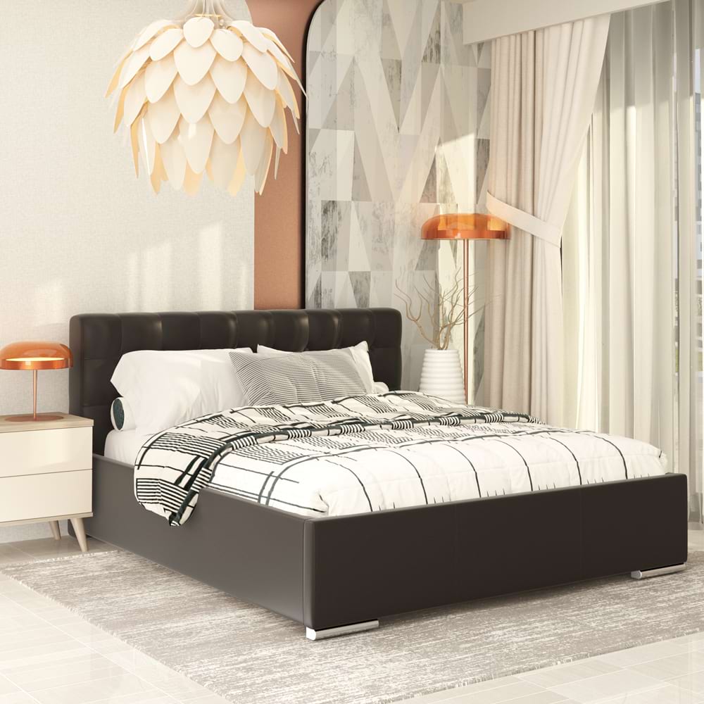 Patul tapitat GEORGIA Clasic, 160×200, cu somiera rabatabila si lada depozitare, husat cu piele eco Neagra are un design modern si elegant pe un cadru robust si bine proiectat. Tablia patului este un element distinctiv, formata din patrate tapitate care adauga un efect vizual interesant si un plus de confort.Patul dispune de o somiera rabatabila, oferind spatiu de depozitare dedesubt, ceea ce il face nu doar estetic placut, ci si practic. Marginile patului sunt bine definite si finisate, contribuind la aspectul sau sofisticat. Exclusiv TAMOS! Pret de producator , livrare rapida si Gratuita ! Configurabilconfigurezi husa (piele ecologica, piele texturata, catifea, stofa)configurezi dimensiune pat – 140cm, 160cm, 180cmconfigurezi complemente – asezare pe coltul camerei, saltele, noptiere, comode, dulapuri AvantajeCONFORT – Combinand armonios rigoarea geometrica a tabliei cu formele arcuite pe care le creaza buretele folosit din belsug, patul Georgia da nastere unui stil personal si cald.Incadrandu-se cu succes in orice stil de amenajare, realizeaza combinatii valoroase cu mobilierul din lemn, furniruri sau placaje.FUNCTIONALITATE – Patul tapitat Georgia Clasic contine o somiera metalica ranfortata, compusa din lamele arcuite din fag, montate pe un cadru metalic foarte solid. Sistemul de ridicare compus din balamale si amortizoare cu gaz vin sa completeze fiabilitatea suportului de saltea. Compartimentul de depozitare generos si complet tapitat iti va organiza si iti va sistematiza spatiul din dormitor.REZISTENTA – Pentru o rezistenta fara cusur, am proiectat pentru patul Georgia Clasic un sistem metalic ce sustine fundurile de pat distantate de sol si rigidizeaza cadrul patului. In plus, o bara de rigidizare metalica dispusa transversal sprijina somiera in starea de repaus si impiedica deformarea lateralelor patului in timp. Sistemul permite o aerisire corecta a saltelei si a lucrurilor ce se depoziteaza in lada patului.Mobilier kit, se livreaza demontat, ambalat in cutii de cartonKitul contine schita montaj, feronerie, certificat garantie si conformitateSomiera metalica cu lamele arcuite din fagPistoane cu gaz (amortizoare)Spatiu depozitare sub somiera cu structura metalica, distanta de pardoseala si suport depozitare tapitat integralPicioare cromateCusaturi de tapiterie cu banda de intarire Dimensiuni pat Georgia Clasic 160x200cmDimensiuni interioare: 161x201cmDimensiuni exterioare: 170x217cmInaltime tablie mare: 105cmInaltime cadru pat: 37cmInaltime de la sol: 4cm Texturi / culori disponibilepiele eco Neagra Garantie 24 luni Livrare Gratuita. Manipularea produsului nu este inclusa, produsul se preia de la masina. *NOTA* Imaginile afisate sunt doar pentru scopuri ilustrative. Dimensiunile reale ale produsului pot diferi usor fata de cele prezentate. De asemenea, culorile pot varia in functie de setarile dispozitivului dvs. Va rugam sa verificati specificatiile produsului pentru detalii exacte si sa va asigurati ca este decorul dorit.*Noptiera, salteaua de pat, lenjeria si celelalte acesorii din imagine nu sunt incluse in pret….