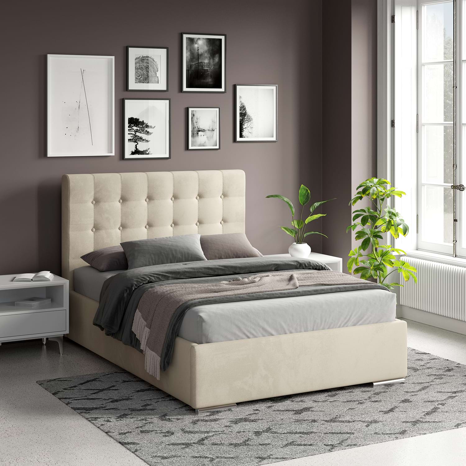 Patul tapitat GEORGIA Clasic, 180×200, H127 cu somiera rabatabila si lada depozitare, husat cu catifea Bej are un design modern si elegant pe un cadru robust si bine proiectat. Tablia patului este un element distinctiv, formata din patrate tapitate care adauga un efect vizual interesant si un plus de confort.Patul dispune de o somiera rabatabila, oferind spatiu de depozitare dedesubt, ceea ce il face nu doar estetic placut, ci si practic. Marginile patului sunt bine definite si finisate, contribuind la aspectul sau sofisticat. Exclusiv TAMOS! Pret de producator , livrare rapida si Gratuita ! Configurabilconfigurezi husa (piele ecologica, piele texturata, catifea, stofa)configurezi dimensiune pat – 140cm, 160cm, 180cmconfigurezi complemente – asezare pe coltul camerei, saltele, noptiere, comode, dulapuri AvantajeCONFORT – Combinand armonios rigoarea geometrica a tabliei cu formele arcuite pe care le creaza buretele folosit din belsug, patul Georgia da nastere unui stil personal si cald.Incadrandu-se cu succes in orice stil de amenajare, realizeaza combinatii valoroase cu mobilierul din lemn, furniruri sau placaje.FUNCTIONALITATE – Patul tapitat Georgia Clasic contine o somiera metalica ranfortata, compusa din lamele arcuite din fag, montate pe un cadru metalic foarte solid. Sistemul de ridicare compus din balamale si amortizoare cu gaz vin sa completeze fiabilitatea suportului de saltea. Compartimentul de depozitare generos si complet tapitat iti va organiza si iti va sistematiza spatiul din dormitor.REZISTENTA – Pentru o rezistenta fara cusur, am proiectat pentru patul Georgia Clasic un sistem metalic ce sustine fundurile de pat distantate de sol si rigidizeaza cadrul patului. In plus, o bara de rigidizare metalica dispusa transversal sprijina somiera in starea de repaus si impiedica deformarea lateralelor patului in timp. Sistemul permite o aerisire corecta a saltelei si a lucrurilor ce se depoziteaza in lada patului.Mobilier kit, se livreaza demontat, ambalat in cutii de cartonKitul contine schita montaj, feronerie, certificat garantie si conformitateSomiera metalica cu lamele arcuite din fagPistoane cu gaz (amortizoare)Spatiu depozitare sub somiera cu structura metalica, distanta de pardoseala si suport depozitare tapitat integralPicioare cromateCusaturi de tapiterie cu banda de intarire Dimensiuni pat Georgia Clasic 180x200cmDimensiuni interioare: 181x201cmDimensiuni exterioare: 190x217cmInaltime tablie mare: 127cmInaltime cadru pat: 37cmInaltime de la sol: 4cm Texturi / culori disponibilecatifea Bej Garantie 24 luni Livrare Gratuita. Manipularea produsului nu este inclusa, produsul se preia de la masina. *NOTA* Imaginile afisate sunt doar pentru scopuri ilustrative. Dimensiunile reale ale produsului pot diferi usor fata de cele prezentate. De asemenea, culorile pot varia in functie de setarile dispozitivului dvs. Va rugam sa verificati specificatiile produsului pentru detalii exacte si sa va asigurati ca este decorul dorit.*Noptiera, salteaua de pat, lenjeria si celelalte acesorii din imagine nu sunt incluse in pret….