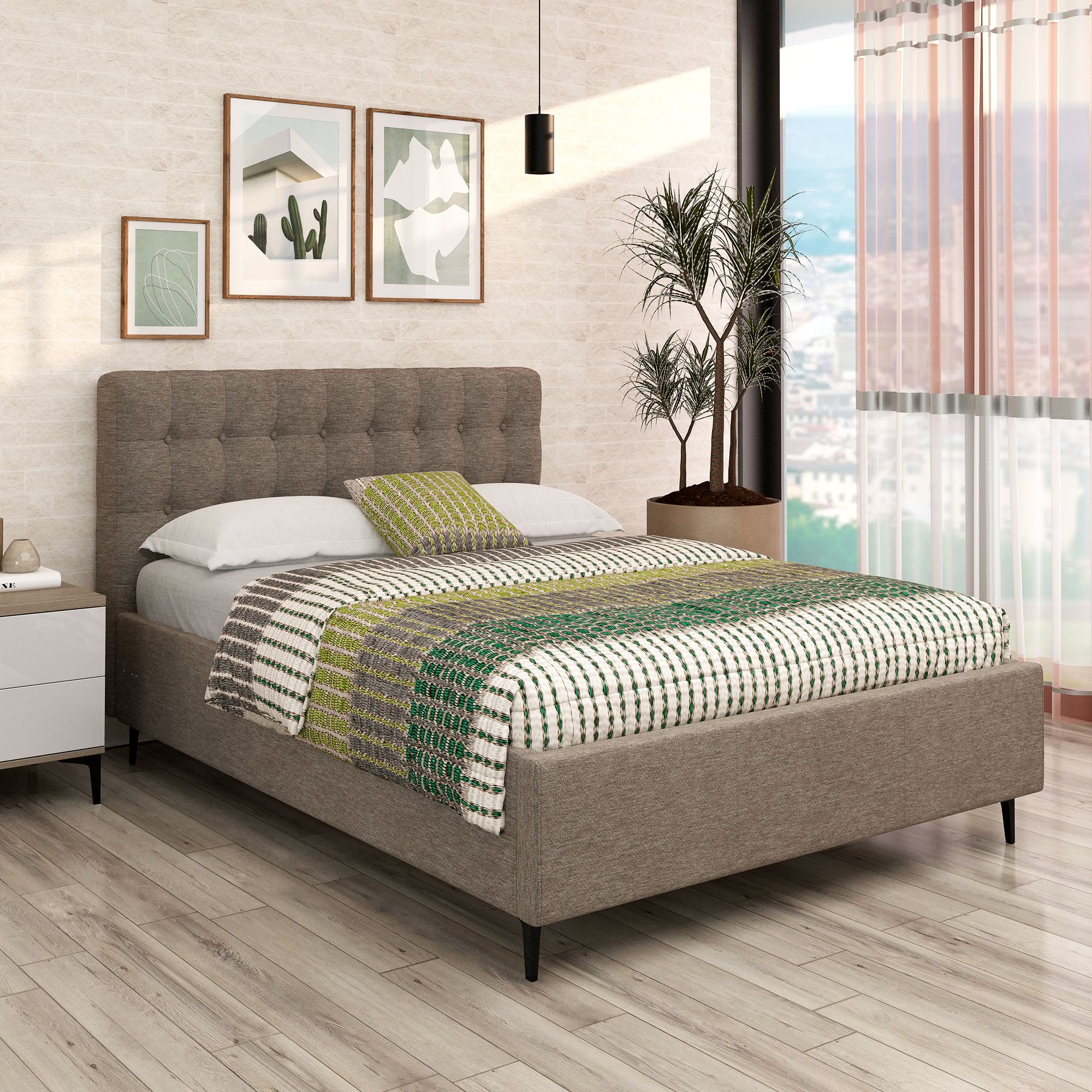 Patul tapitat GEORGIA Pro, 140×200, H116 cm cu somiera rabatabila si lada depozitare, husat cu Stofa Maro V24 are un design modern si elegant pe un cadru robust si bine proiectat. Tablia patului este un element distinctiv, formata din patrate tapitate care adauga un efect vizual interesant si un plus de confort.Patul dispune de o somiera rabatabila, oferind spatiu de depozitare dedesubt, ceea ce il face nu doar estetic placut, ci si practic. Marginile patului sunt bine definite si finisate, contribuind la aspectul sau sofisticat. Exclusiv TAMOS! Pret de producator , livrare rapida si Gratuita ! Configurabilconfigurezi husa (piele ecologica, piele texturata, catifea, stofa)configurezi dimensiune pat – 140cm, 160cm, 180cmconfigurezi complemente – asezare pe coltul camerei, saltele, noptiere, comode, dulapuri AvantajeCONFORT – Combinand armonios rigoarea geometrica a tabliei cu formele arcuite pe care le creaza buretele folosit din belsug, patul Georgia da nastere unui stil personal si cald.Incadrandu-se cu succes in orice stil de amenajare, realizeaza combinatii valoroase cu mobilierul din lemn, furniruri sau placaje.FUNCTIONALITATE – Patul tapitat Georgia Pro contine o somiera metalica ranfortata, compusa din lamele arcuite din fag, montate pe un cadru metalic foarte solid. Sistemul de ridicare compus din balamale si amortizoare cu gaz vin sa completeze fiabilitatea suportului de saltea. Compartimentul de depozitare generos si complet tapitat iti va organiza si iti va sistematiza spatiul din dormitor.REZISTENTA – Pentru o rezistenta fara cusur, am proiectat pentru patul Georgia Pro un sistem metalic ce sustine fundurile de pat distantate de sol si rigidizeaza cadrul patului. In plus, o bara de rigidizare metalica dispusa transversal sprijina somiera in starea de repaus si impiedica deformarea lateralelor patului in timp. Sistemul permite o aerisire corecta a saltelei si a lucrurilor ce se depoziteaza in lada patului.Mobilier kit, se livreaza demontat, ambalat in cutii de cartonKitul contine schita montaj, feronerie, certificat garantie si conformitateSomiera metalica cu lamele arcuite din fagPistoane cu gaz (amortizoare)Spatiu depozitare sub somiera cu structura metalica, distanta de pardoseala si suport depozitare tapitat integralPicioare metaliceCusaturi de tapiterie cu banda de intarire Dimensiuni140x200 cm – dimensiuni exterioare: Lungime 220cm x latime 150cm x Inaltime 116cmdistanta de la pardoseala – 13cmtablie mare – inaltime de la sol – 116cmtablie mare – grosime – 16cmlaterale pat – inaltime – 30cmlaterale pat – grosime – 5cminaltimea de inserare a saltelei in rama patului – 6cm Texturi / culori disponibileStofa Maro V24 Garantie 24 luni Livrare Gratuita. Manipularea produsului nu este inclusa, produsul se preia de la masina. *NOTA* Imaginile afisate sunt doar pentru scopuri ilustrative. Dimensiunile reale ale produsului pot diferi usor fata de cele prezentate. De asemenea, culorile pot varia in functie de setarile dispozitivului dvs. Va rugam sa verificati specificatiile produsului pentru detalii exacte si sa va asigurati ca este decorul dorit.*Noptiera, salteaua de pat, lenjeria si celelalte acesorii din imagine nu sunt incluse in pret….