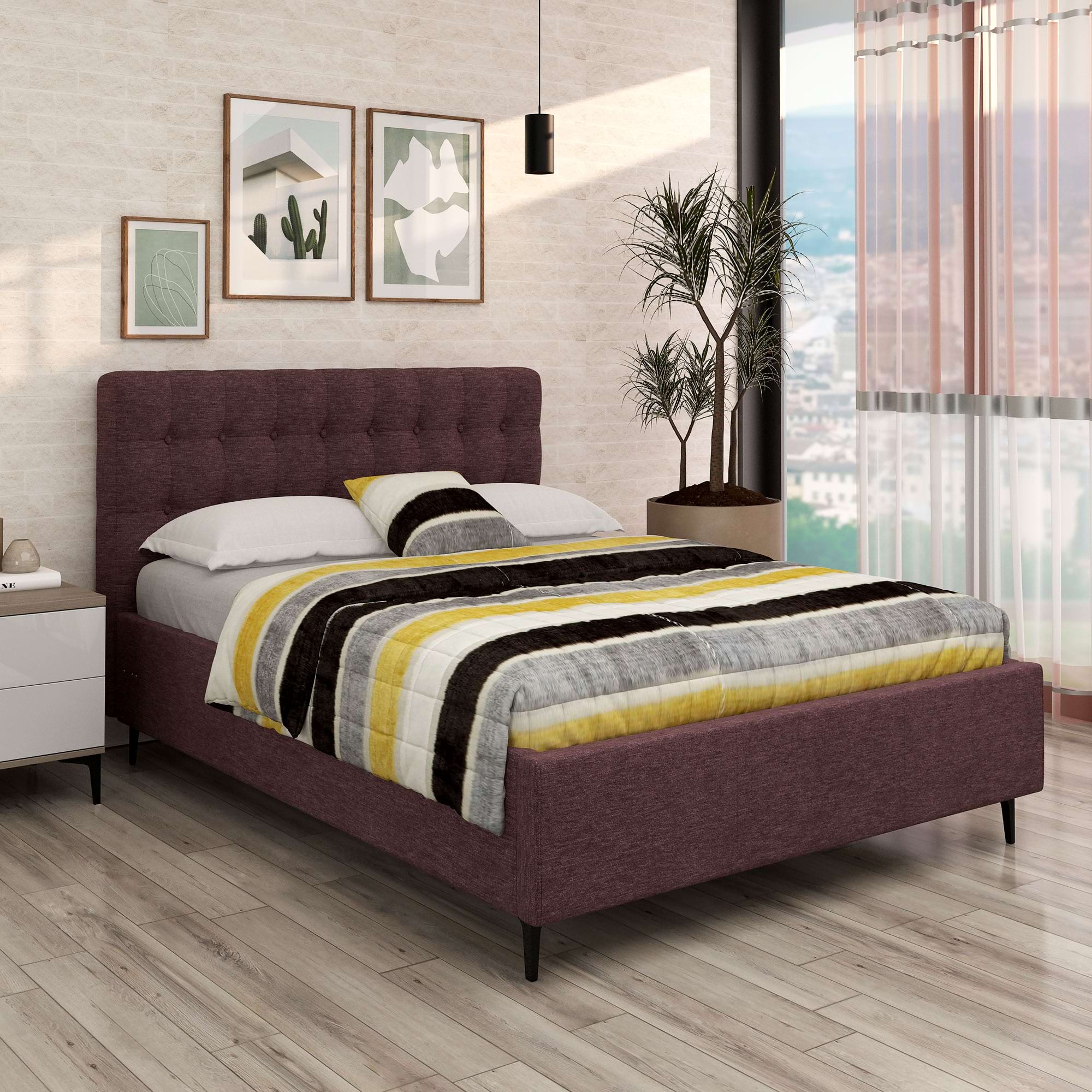 Patul tapitat matrimonial model GEORGIA Pro 140×200, H116 cm este realizat de TAMOS din Stofa Mov V68, prezinta un design modern si elegant, perfect pentru camerele matrimoniale, oferind un aspect placut si confortabil. Structura din metal si elementele lemnoase il fac deosebit de solid, fiind adesea utilizat si de persoane adulte, supraponderale.Caracteristici:Dimensiuni: 140×200 cm, ideal pentru 2 persoane, oferind suficient spatiu pentru un somn confortabil si odihnitor.Material Tapiterie: Stofa Mov V68 de inalta calitate, creaza un aspect sofisticat si o senzatie placuta la atingere.Design Modern: Tablia de pat este inalta si tapițata, oferind un suport confortabil pentru citit sau relaxareFunctionalitate: Patul este echipat cu o somiera rabatabila, facilitand accesul la lada de depozitare generoasa, unde poti organiza eficient lenjeria sau alte obiecte personale.Constructie Durabila: Realizat din materiale de inalta calitate, patul GEORGIA garanteaza stabilitate si durabilitate, fiind conceput sa reziste in timp.Fabricat de TAMOS | Livrare Gratuita | Garantie Producator | Pat configurabilconfigurezi husa (catifea, piele ecologica, stofa, piele txturata)configurezi dimensiuniconfigurezi complemente din acelasi material (noptiere, taburete si lazi depozitare) AvantajeMobilier kit, se livreaza demontat, ambalat in cutii de cartonKitul contine schita montaj, feronerie, certificat garantie si conformitateSistemul de sustinere saltea este compus din somiera metalica cu traverse elastice din lemn stratificat fag.Pistoane gaz (amortizoare)Lada de depozitare cu sustinere metalica si suport din PAL melaminat AlbCusaturi de tapiterie cu banda de intarirePicioare metalice Dimensiuni140x200 cm – dimensiuni exterioare: Lungime 220cm x latime 150cm x Inaltime 116cm160x200 cm – dimensiuni exterioare: Lungime 220cm x latime 170cm x Inaltime 116cm180x200 cm – dimensiuni exterioare: Lungime 220cm x latime 190cm x Inaltime 116cmdistanta de la pardoseala – 13cmtablie mare – inaltime de la sol – 116cmtablie mare – grosime – 16cmlaterale pat – inaltime – 30cmlaterale pat – grosime – 5cminaltimea de inserare a saltelei in rama patului – 6cm MaterialeStofa Mov V68Structura patului din rame metalice cu adaosuri lemnoaseColtari metalici solizi de fixare a cadrului patuluiSomiera lamele fag cu rama metalicaBalamale si amortizor cu gazFund pat pentru depozitare – PAL melaminat Alb 10mmStructura metalica depozitare Garantie Producator 24 luni Livrare Gratuita. Manipularea produsului nu este inclusa. Produsul se preia de la masina.*NOTA* Imaginile afisate sunt doar pentru scopuri ilustrative. Dimensiunile reale ale produsului pot diferi usor fata de cele prezentate. De asemenea, culorile pot varia in functie de setarile dispozitivului dvs. Va rugam sa verificati specificatiile produsului pentru detalii exacte si sa va asigurati ca este decorul dorit.*Noptiera, salteaua de pat, lenjeria si celelalte acesorii din imagine nu sunt incluse in pret….
