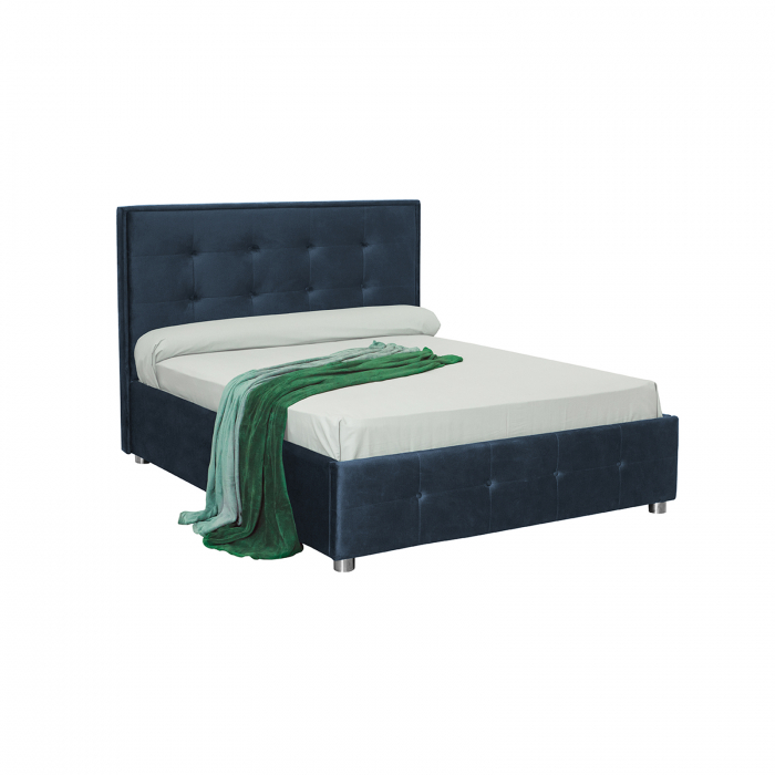 Pat tapitat LUXOR, 140×200 cm, cu sezut rabatabil, spatiu depozitare, albastru inchis