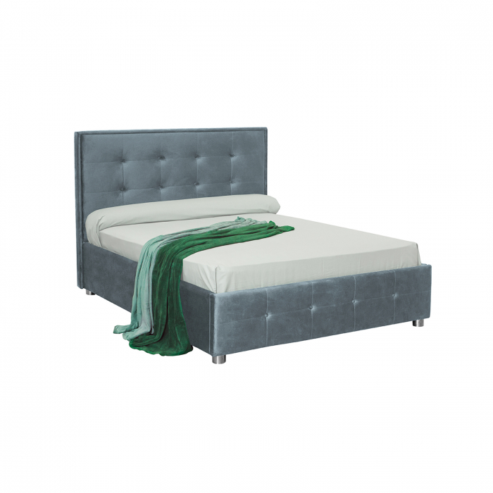 Pat tapitat LUXOR, 160×200 cm, cu sezut rabatabil, spatiu depozitare, albastru deschis