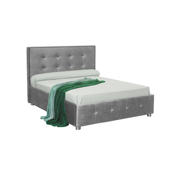 Pat tapitat LUXOR, 160×200 cm, cu sezut rabatabil, spatiu depozitare, gri deschis