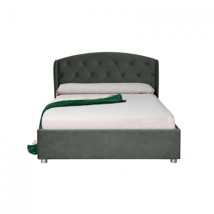 Pat tapitat ROUND, cu somiera rabatabila, spatiu depozitare, gri inchis, 180×200 cm