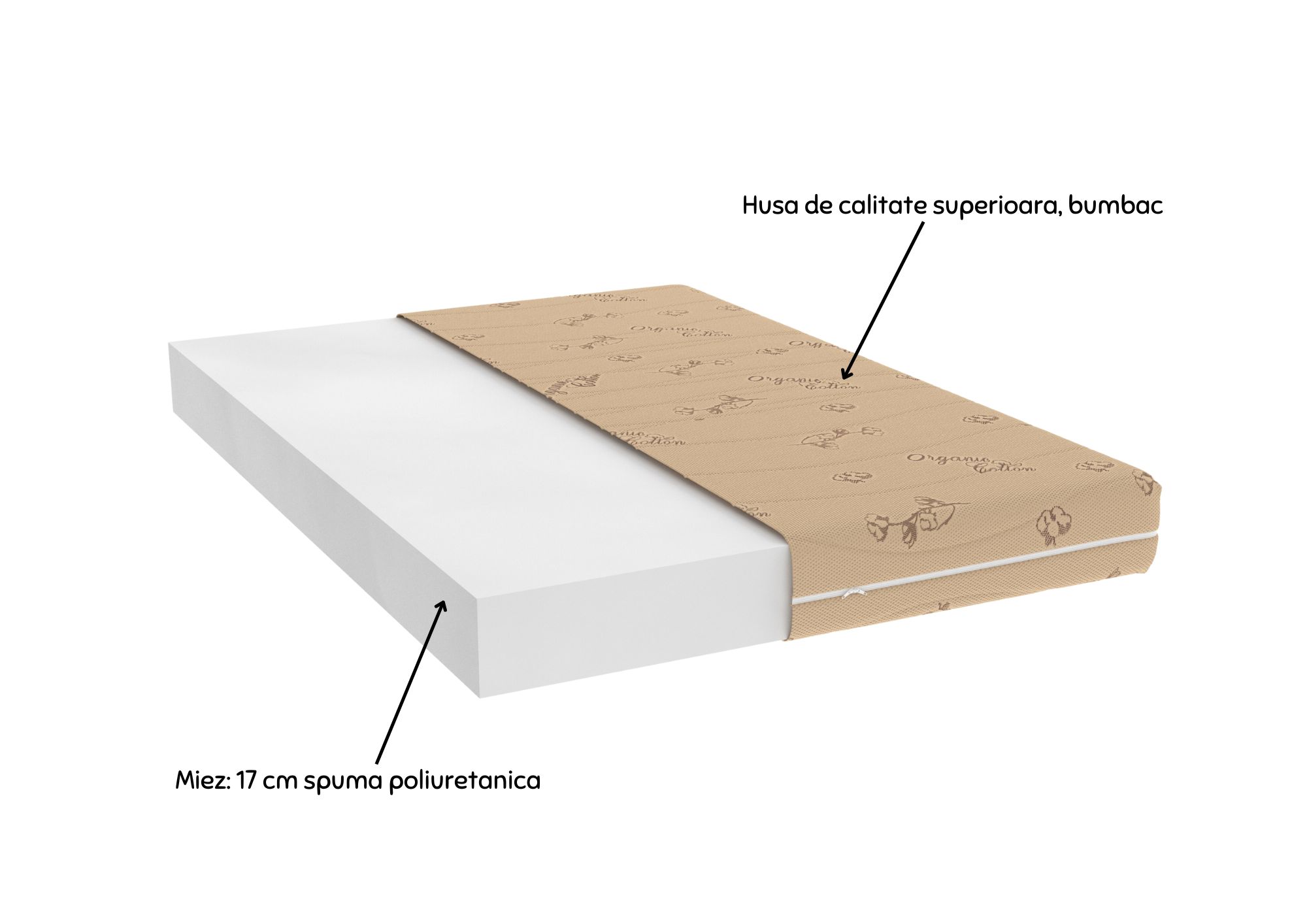 Saltea Somnart Ortopedic Bio Cotton, husa detasabila si lavabila din bumbac organic, 90×200 Alege salteaua ortopedica Somnart® Bio Cotton cu duritate medie si husa din bumbac organic, detasabila si lavabila. Salteaua are stratul de baza format din spuma elastica High Resilience de 17 cm pentru sustinere optima si husa matlasata cu un strat generos de vata pentru un plus de confort.n Datorita acestei combinatii, salteaua indeplineste toate criteriile de elasticitate, durabilitate si suport necesare pentru o odihna care te fereste de umiditate si de transpiratia excesiva, fiind excelenta pe timpul verii. Ce avantaje iti ofera Salteaua Somnart Ortopedic Bio Cotton? 1. Suport si flexibilitate in timpul somnului Baza formata din spuma poliuretanica High Resilience de 17 cm cu fermitate medie ofera un nivel optim de sustinere, fiind in acelasi timp elastica.n Prin urmare, coloana vertebrala va primi sprijinul necesar, iar muschii corpului se vor putea relaxa corespunzator. 2. Materialul cu bumbac organic, pentru cei care apreciaza avantajele bumbacului Se stie ca bumbacul transporta foarte bine umezeaza si transpiratia, mentine pielea uscata si sanatoasa, lucru extrem de apreciat mai ales in timpul zilelor toride de vara. Cand recomandam Salteaua Somnart Bio Cotton? Salteaua Somnart Bio Cotton este ideala: Pentru cei care trasnpira mult Daca preferi o saltea confortabila, cu fermitate medie Daca iti doresti un somn odihnitor si sanatos Alte beneficii ale saltelei Somnart Bio Cotton Suport ortopedic optim pentru o sustinere ideala a corpului Husa matlasata pentru un plus de confort si rezistenta superioara datorita stratului generos de vata Husa este confectionata din tricot de inalta calitate si are doua panouri detasabile cu fermoar, lavabile separat la 40 de grade, fiind astfel mai usor de intretinut Este rolata pentru transport comod si pastrarea integritatii saltelei pana la deschidere Materiale certificate Oeko-tex Standard 100, pentru absenta substantelor periculoase Informatii tehnice: Compozitie husa: Fete tricot 100% bumbac organic Compozitie miez: 17 cm spuma elastica din poliuretan „High Resilience” de calitate superioara, densitate 23 Kg/m3 Inaltime totala miez: 17 cm (toleranta ± 1 cm) Va rugam sa masurati cu atentie cadrul patului pentru a va asigura ca ati comandat dimensiunea corecta a saltelei. Recomandari de utilizare: In cazul saltelelor rolate a se desface cu grija folia de protectie, fara a folosi foarfece sau alte obiecte taioase. Toate materialele noi emana miros. Saltelele noi au asa numitul „miros de fabrica” pentru ca au stat sigilate in pachete neaerisite. Acest miros va disparea daca produsul este lasat la aerisit cel putin 24 de ore inainte de utilizare. Lasati salteaua sa revina la forma initiala (timp de asteptare minim 24 ore). Produsele presate isi recapata forma si dimensiunea in cateva zile dupa ce sunt desfacute din pachetul initial. Husa de saltea este lavabila la 40 de grade. Evitati umezirea saltelei. Salteaua se curata numai cu aspiratorul. Protejati salteaua cu o husa / cu o protectie de saltea pentru dimensiunea de 90×200. Aerisiti periodic salteaua. Intoarceti periodic salteaua de pe o parte pe cealalta (o data la cateva luni) Rotiti periodic salteaua (o data la cateva luni) Certificare Oeko-tex Standard 100, pentru absenta substantelor periculoase Eticheta Oeko-Tex® indica utilizatorilor finali interesati beneficiile suplimentare ale sigurantei testate pentru imbracamintea prietenoasa cu pielea si alte materiale textile. In acest fel, eticheta de testare ofera un instrument important de luare a deciziilor atunci cand achizitionati produse textile. Increderea in textile – un sinonim international pentru productia de textile responsabil – de la materia prima la produsul finit pe rafturile magazinelor.