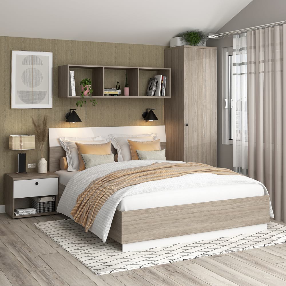 Dormitorul AMBRO in configuratia AMBRO 2, din colectia modulara PRIMAVERA, este un ansamblu de mobila ce imbina functionalitatea cu designul modern, special conceput pentru camerele compacte. Acest dormitor in decor Oak (Stejar) cu Alb este alcatuit dintr-un pat de doua persoane, o noptiera cu un sertar, un dulap de haine cu o singura usa si o biblioteca suspendata, fiecare piesa fiind meticulos proiectata pentru a maximiza confortul si eficienta utilizarii spatiului. Dulapul deschis tip biblioteca adauga un aspect placut camerei si poate fi utilizat pentru a expune carti sau obiecte decorative.Practic si estetic, AMBRO 2 este solutia ideala pentru incaperile cu inaltimi mai reduse, avand dulapuri de haine de inaltime 180 cm sau 200cm(optiune). Dulapurile au picioare metalice de reglare din interior, o solutie excelenta atunci cand pardoseala nu este perfect plana. Configuratia inteligenta permite personalizarea ansamblului pentru a se potrivi optim cu dimensiunile si nevoile specifice ale camerei dvs. Optati pentru dimensiuni de pat la alegere, 140x200cm sau 160x200cm(optiune), cu suport de saltea inclus, realizat din PAL, cu spatii de ventilare intre traverse, pentru aerisirea corecta a saltelei. Patul poate fi configurat cu sertar (optiune) sau fara sertar.Dormitorul AMBRO 2 este furnizat ca mobilier kit, cu instrucțiuni clare de montaj, feronerie de calitate, certificat de garanție si conformitate. TAMOS ofera avantajul unui pret de fabrica, cu livrare rapida si gratuita pe tot teritoriul tarii, garantie de producator! Dormitor configurabilconfigurezi materialele, decor, PALconfigurezi dimensiune patconfigurezi sertar patconfigurezi dimensiuni dulapconfigurezi complemente Caracteristici si avantaje Dormitor Ambro 3mobilier kit, se livreaza demontat, ambalat in cutii de cartonKitul contine schita montaj, feronerie, certificat garantie si conformitate Configuratia AMBRO 3Pat matrimonial AMBRO cu suport saltea inclus Noptiera PRIMAVERA 45cm, 1 sertarDulap haine 1 usa, polite, bara umerase, PRIMAVERA 45x50x180cmBiblioteca PRIMAVERA 120cm Pat matrimonial Dimensiuni interioare pat/dim saltea: 140x200cm sau 160x200cm ( patul contine suport pentru saltea realizat din PAL cu spatii de aerisire )Dimensiuni exterioare pat 147x204cm sau 167x204cm Dulapuri (Lungime x Adancime x Inaltime)Dulap haine 1 usa, polite, bara umerase, PRIMAVERA 45x50x180cmDulap suspendat biblioteca, PRIMAVERA 120x32x35cm Complementele – se achizitioneaza separat conta costSaltele – optional Comode – optionalDulapuri – optional MaterialePAL dublu melaminat 16mm, 25mm Oak, AlbCant ABS 0,4mmCant ABS 1mm (fronturi) Garantie producator 24 luni Transport GRATUIT in toata tara*Salteaua de pat si accesoriile din imagine nu sunt incluse in pret( Lenjerie , perne , lampi , veioze…)…
