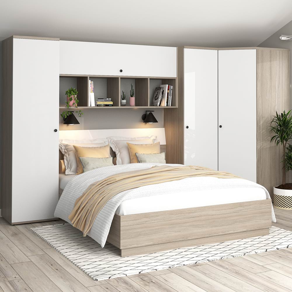Dormitorul AMBRO cu pozitionare pe colt, in configuratia AMBRO 11 combina functionalitatea cu stilul modern, fiind o solutie perfecta pentru cei care doresc sa optimizeze spatiul disponibil fara a compromite designul. Configuratia AMB11 in decor Oak cu Pesto sugereaza un aspect elegant si adauga un vibe de contemporaneitate oricarui interior.