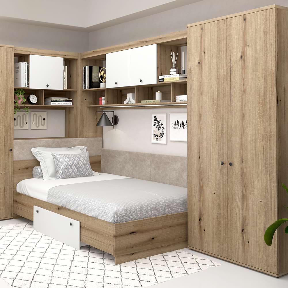 Dormitor colt AMBRO 10, Stejar, Alb