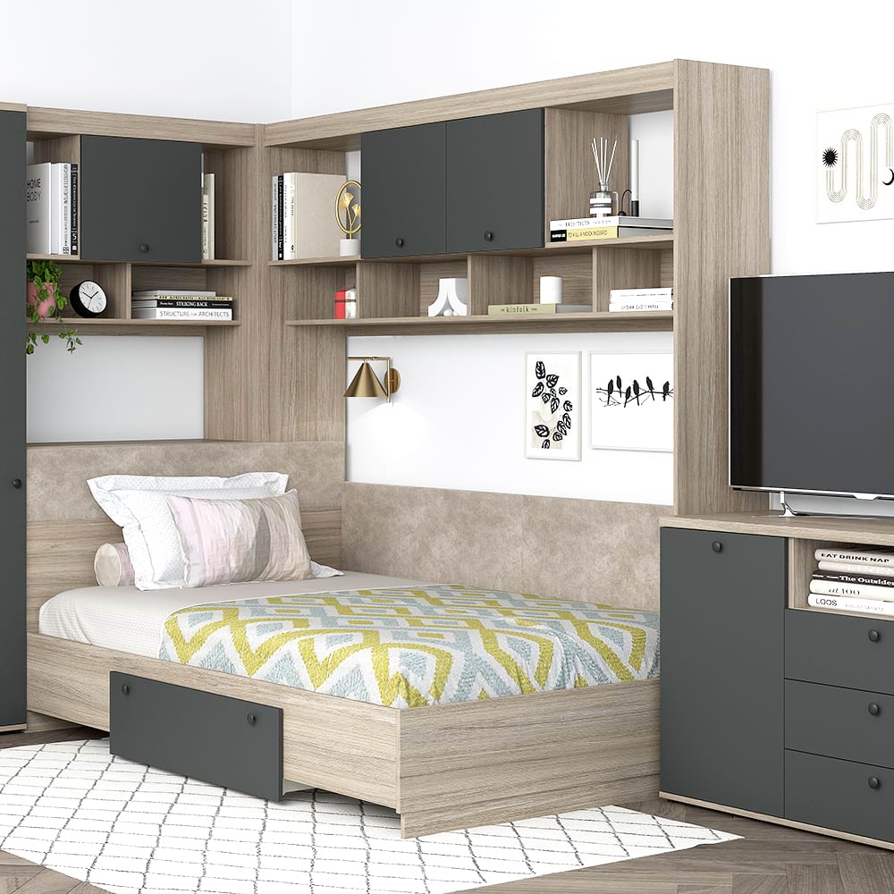 Dormitor colt AMBRO 11 cu comoda, Oak, Antracit