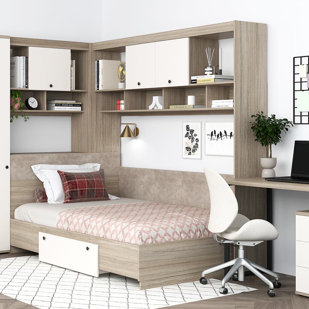 Dormitor colt AMBRO 12 cu birou, Oak, Alb