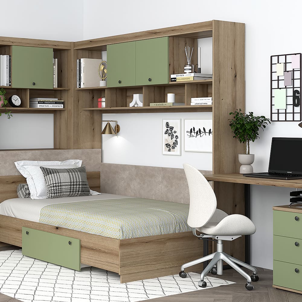 Dormitor colt AMBRO 12 cu birou, Stejar, Pesto