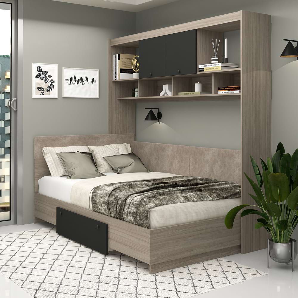 Ansamblul Dormitor Ambro in configuratia AMBRO 6 reprezinta o sinteza perfecta intre design-ul modern si folosirea judicioasa a spatiului. Cu un finisaj bland de stejar (oak) si Antracit, acest set de mobilier ofera o solutie de amenajare pe coltul camerei. Pe lungimea patului, dulapurile suspendate din Oak si Antracit creeaza un contrast placut si ofera spatiu suplimentar pentru a va organiza cartile si decoratiunile. Rafturile deschise sunt ideale pentru a expune articolele preferate sau pentru a pastra la indemana obiectele esentiale.Designul inteligent include un pat confortabil, la care se poate adauga optional un sertar ce ofera spațiu de depozitare generos pentru pilote, paturi sau perne voluminoase. Patul beneficiaza de 2 dimensiuni: 120x200cm si 140x200cm, facandu-l util atat pentru camere de copii si adolescenti ce dorm singuri in camera, dar si pentru un cuplu de adulti. Suportul de saltea FORTE permite utilizarea pe termen lung a patului, fara deterioararea saltelei in timp datorita spatiilor de ventilare intre traverse si a suportilor de sustinere.Elimina problema pardoselilor strambe – ponturile (dulapurile suspendate) au picioruse metalice de reglare, o solutie excelenta atunci cand pardoseala nu este perfect plana. Elimina prinderea dulapurilor suspendate pe perete – dulapurile suspendare necesita doar ancorarea (prinderea de siguranta), nu necesita prinderea de sustinere pe perete.Interschimbabil – ansamblul se poate pozitiona pe orice colt al camerei.TAMOS ofera avantajul unui pret de fabrica, cu livrare rapida si gratuita pe tot teritoriul tarii, garantie de producator! Dormitor configurabilconfigurezi materialele, decor, PALconfigurezi dimensiune patconfigurezi sertar patconfigurezi dimensiuni dulapconfigurezi complemente Mobilier kitmobilier kit, se livreaza demontat, ambalat in cutii de cartonKitul contine schita montaj, feronerie, certificat garantie si conformitate Configuratia AMBRO 7Pat de colt AMBRO cu suport saltea inclus Dulap suspendat biblioteca AMBRO 207x35x200cmOptiuniSertar pat (optiune) Pat matrimonial Dimensiuni interioare pat/dim saltea: 120x200cm sau 140x200cmDimensiuni exterioare pat 127x204cm sau 147x204cm Dulapuri (Lungime x Adancime x Inaltime)Dulap suspendat biblioteca AMBRO 207cm Complementele – din aceeasi colectie PRIMAVERAComode – optionalDulapuri – optionalToalete – optionalTaburete – optionalLazi depozitare – optional MaterialePAL dublu melaminat 16mm, 25mm Oak, AntracitCant ABS 0,4mmCant ABS 1mm (fronturi si rama patului) Garantie producator 24 luni Transport GRATUIT in toata tara*Salteaua de pat si accesoriile din imagine nu sunt incluse in pret( Lenjerie , perne , lampi , veioze…)…
