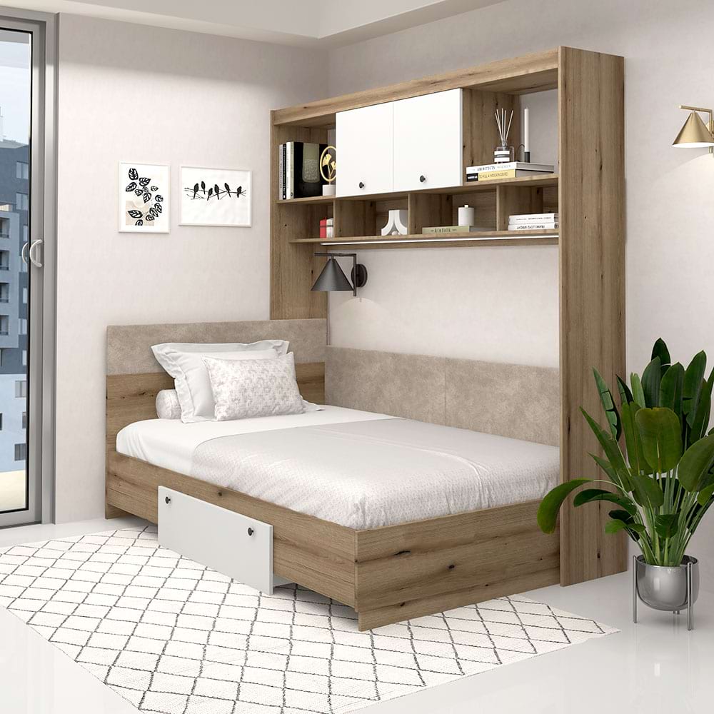 Ansamblul Dormitor Ambro in configuratia AMBRO 6 reprezinta o sinteza perfecta intre design-ul modern si folosirea judicioasa a spatiului. Cu un finisaj bland de Stejar si Alb, acest set de mobilier ofera o solutie de amenajare pe coltul camerei. Pe lungimea patului, dulapurile suspendate din Stejar si Alb creeaza un contrast placut si ofera spatiu suplimentar pentru a va organiza cartile si decoratiunile. Rafturile deschise sunt ideale pentru a expune articolele preferate sau pentru a pastra la indemana obiectele esentiale.Designul inteligent include un pat confortabil, la care se poate adauga optional un sertar ce ofera spațiu de depozitare generos pentru pilote, paturi sau perne voluminoase. Patul beneficiaza de 2 dimensiuni: 120x200cm si 140x200cm, facandu-l util atat pentru camere de copii si adolescenti ce dorm singuri in camera, dar si pentru un cuplu de adulti. Suportul de saltea FORTE permite utilizarea pe termen lung a patului, fara deterioararea saltelei in timp datorita spatiilor de ventilare intre traverse si a suportilor de sustinere.Elimina problema pardoselilor strambe – ponturile (dulapurile suspendate) au picioruse metalice de reglare, o solutie excelenta atunci cand pardoseala nu este perfect plana. Elimina prinderea dulapurilor suspendate pe perete – dulapurile suspendare necesita doar ancorarea (prinderea de siguranta), nu necesita prinderea de sustinere pe perete.Interschimbabil – ansamblul se poate pozitiona pe orice colt al camerei.TAMOS ofera avantajul unui pret de fabrica, cu livrare rapida si gratuita pe tot teritoriul tarii, garantie de producator! Dormitor configurabilconfigurezi materialele, decor, PALconfigurezi dimensiune patconfigurezi sertar patconfigurezi dimensiuni dulapconfigurezi complemente Mobilier kitmobilier kit, se livreaza demontat, ambalat in cutii de cartonKitul contine schita montaj, feronerie, certificat garantie si conformitate Configuratia AMBRO 7Pat de colt AMBRO cu suport saltea inclus Dulap suspendat biblioteca AMBRO 207x35x200cmOptiuniSertar pat (optiune) Pat matrimonial Dimensiuni interioare pat/dim saltea: 120x200cm sau 140x200cmDimensiuni exterioare pat 127x204cm sau 147x204cm Dulapuri (Lungime x Adancime x Inaltime)Dulap suspendat biblioteca AMBRO 207cm Complementele – din aceeasi colectie PRIMAVERAComode – optionalDulapuri – optionalToalete – optionalTaburete – optionalLazi depozitare – optional MaterialePAL dublu melaminat 16mm, 25mm Stejar, AlbCant ABS 0,4mmCant ABS 1mm (fronturi si rama patului) Garantie producator 24 luni Transport GRATUIT in toata tara*Salteaua de pat si accesoriile din imagine nu sunt incluse in pret( Lenjerie , perne , lampi , veioze…)…
