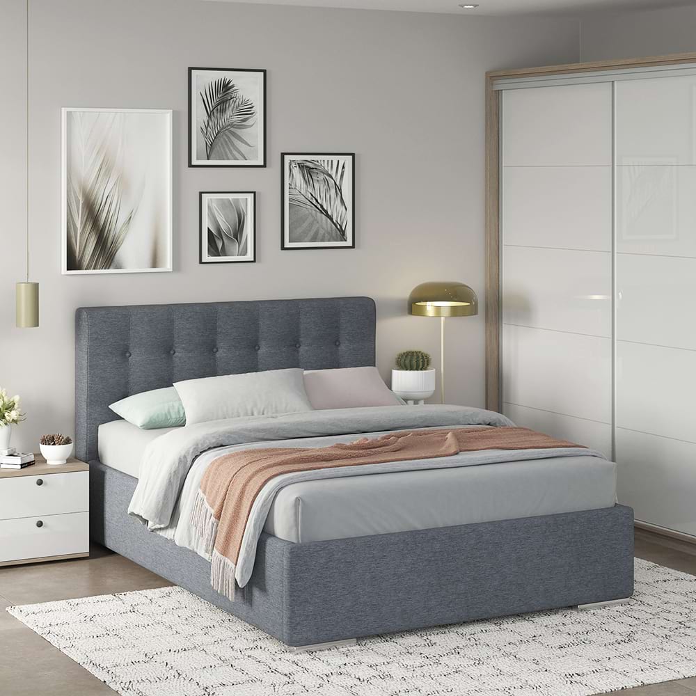 Dormitorul matrimonial Georgia 1, cu pat tapitat Georgia cu Stofa Albastru deschis V73, dulap usi culisante Oak, Alb Gloss si 2 noptiere cu sertare cu amortizare este un produs exclusiv Tamos. Avantajeconfigurezi materialeleconfigurezi dimensiune patconfigurezi dimensiune dulapconfigurezi complementemobilier kit, se livreaza demontat, ambalat in cutii de cartonfiecare componenta a dormitorului este ambalata individual, evitandu-se confuzia la asamblareFeronerie Hafele – GermaniaSomiera metalica cu lamele arcuite din fagPistoane cu gaz (amortizoare)Spatiu depozitare sub somiera cu structura metalica, distanta de pardoseala si suport depozitare tapitat integralPicioare cromateCusaturi de tapiterie cu banda de intarire ConfiguratiePat tapitat Georgia cu somiera si lada de depozitareNoptiera PRIMAVERA 2 sertare – 2 bucatiDulap PRIMAVERA cu usi culisante Complemente (cost suplimentar)Oglinda dulap – Kit 3/150 cm sau Kit 5/150 cmSertare dulap – Kit 2 sertare sau Kit 4 sertare Pat tapitat Georgia, cu somiera si lada depozitareProdusul contine o somiera metalica ranfortata, compusa din lamele arcuite din fag, montate pe un cadru metalic foarte solid. Sistemul de ridicare compus din balamale si amortizoare cu gaz vin sa completeze fiabilitatea suportului de saltea. Compartimentul de depozitare generos si complet tapitat iti va organiza si iti va sistematiza spatiul din dormitor. Pentru o rezistenta fara cusur, am proiectat pentru patul Georgia un sistem metalic ce sustine fundurile de pat distantate de sol si rigidizeaza cadrul patului. In plus, o bara de rigidizare metalica dispusa transversal sprijina somiera in starea de repaus si impiedica deformarea lateralelor patului in timp. Sistemul permite o aerisire corecta a saltelei si a lucrurilor ce se depoziteaza in lada patului.Lungime=220cm x latime=150cm x Inaltime=100cm ( dimensiune saltea 200 x 140cm)Lungime=220cm x latime=170cm x Inaltime=100cm ( dimensiune saltea 200 x 160cm)Lungime=220cm x latime=190cm x Inaltime=100cm ( dimensiune saltea 200 x 180cm) Noptiera PRIMAVERA cu 2 sertare = 2 bucatiDimensiuni noptiera 45x40x41cm (LxlxH) Dulap configurabil PRIMAVERA Dulapul Primavera are 3 optiuni de configurare pe lungime: 155cm, 185cm, 205cm si 2 optiuni de configurare pe inaltime: 205cm si 225cm. Este prevazut cu un sistem de culisare de ultima generatie din aluminiu, ce permite o reglare fina a traseului de culisare. Compartimentarea ofera solutii complete de depozitare, cu polite pentru asezarea riguroasa a hainelor si cu bara de haine pentru hainele care se depoziteaza pe umerase. Picioarele metalice cu reglaj permit o aliniere perfecta a dulapului chiar daca pardoseala nu este perfect plana, pentru a beneficia de o buna culisare a usilor in timp. 155 x 60 x 205 cm 185 x 60 x 205 cm 205 x 60 x 205 cm 155 x 60 x 225 cm 185 x 60 x 225 cm 205 x 60 x 225 cm Dulapul PRIMAVERA – 20 ani de experienta! Facute sa reziste!compartimentarea este proiectata cu incarcare echilibrata a spatiilorpicioare metalice cu reglaj din interior pentru o asamblare corecta a dulapului si o culisare optima indiferent de planeitatea pardoseliiusile dulapului sunt prevazute cu profil maner de aluminiu (perie de amortizare incastrata in profil) Dimensiuni oglinda dulap L155: 66x37cm Dimensiuni oglinda dulap L185:81x37cmDimensiuni oglinda dulap L205:91x37cm MaterialePAL dublu melaminat 16mm, 25mmMDF Gloss 18mmStofa Albastru deschis V73Cant ABS 0,4mmCant ABS 1mm Garantie 24 luni Transport GRATUIT in toata tara. Produsulele se preiau de la masina.Nota : * Imaginile afisate sunt doar pentru scopuri ilustrative. Dimensiunile reale ale produsului pot diferi usor fata de cele prezentate. De asemenea, culorile pot varia in functie de setarile dispozitivului dvs. Va rugam sa verificati specificatiile produsului pentru detalii exacte si sa va asigurati ca este decorul dorit.*Salteaua de pat si accesoriile din imagine nu sunt incluse in pret….