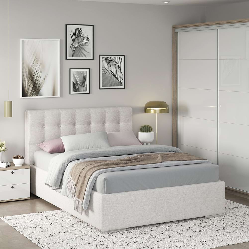 Dormitor GEORGIA 1, Oak, Alb Gloss, Stofa Bej V03