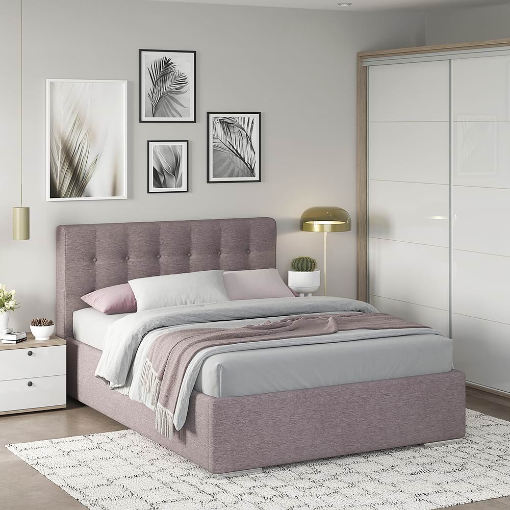 Dormitor GEORGIA 1, Oak, Alb Gloss, Stofa Mov deschis V60