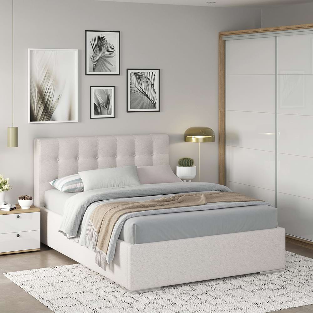 Dormitor GEORGIA 1, Stejar, Alb Gloss, Stofa Bej V03