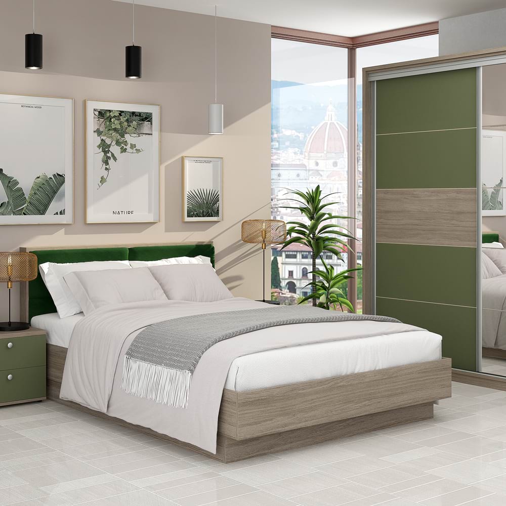 Dormitor Primavera 1, Oak, Pesto, Catifea Verde