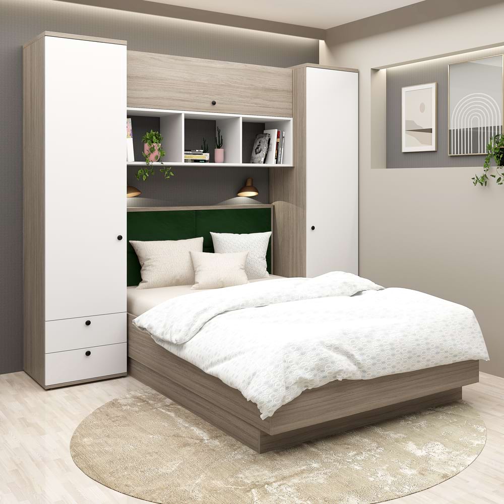 Dormitor RIALTO 1, pat incadrat, Oak, Alb, Catifea Verde