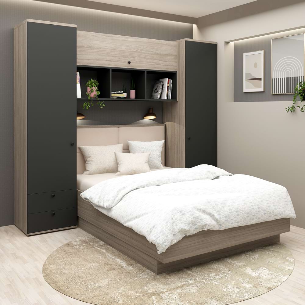 Dormitor RIALTO 1, pat incadrat, Oak, Antracit, Catifea Bej