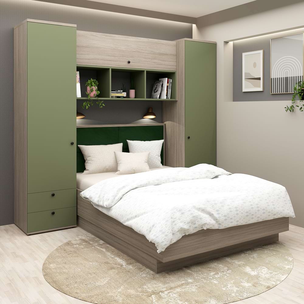 Dormitor RIALTO 1, pat incadrat, Oak, Pesto, Catifea Verde