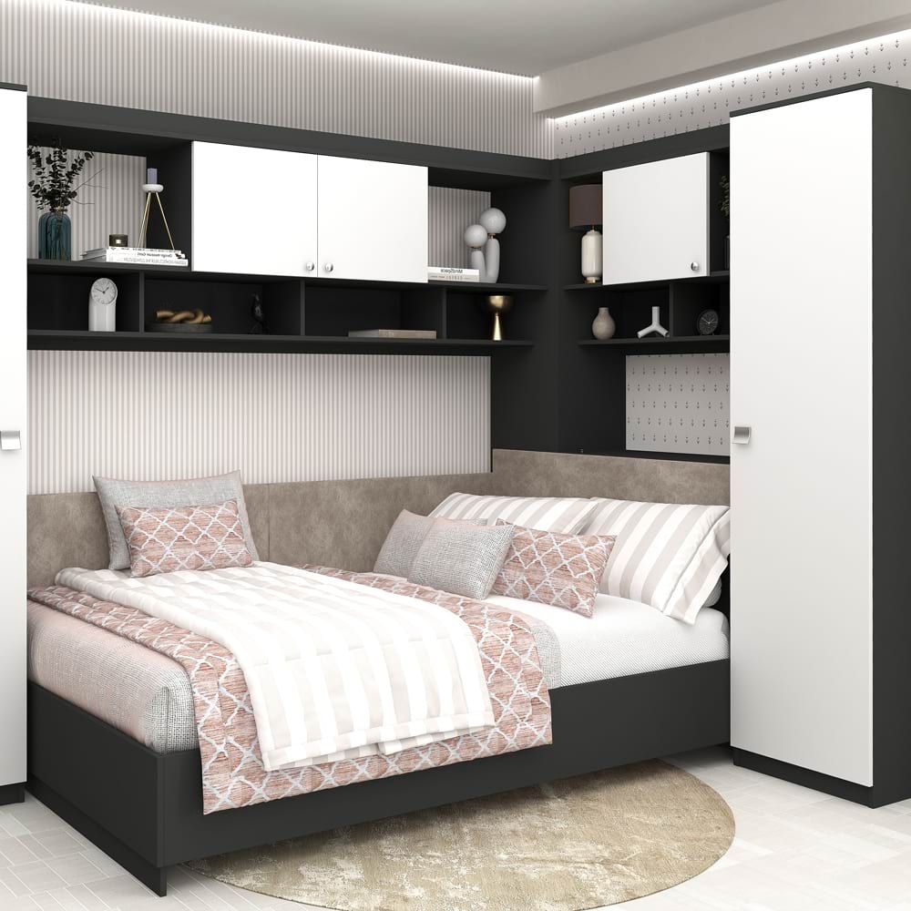 Oferta Dormitor colt ALESSIO 2, Antracit, Alb cu saltea inclusa