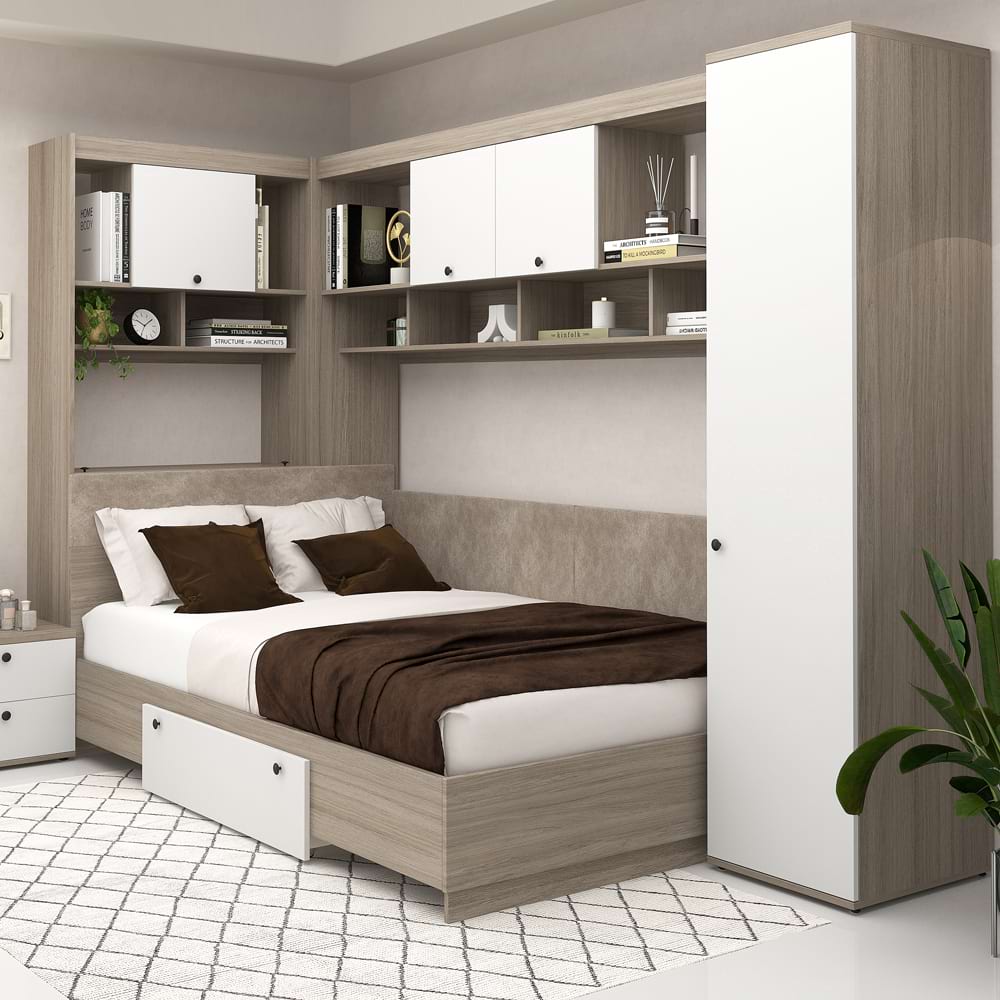 *Oferta Dormitor colt AMBRO 8, Oak, Alb cu saltea inclusa – Saltea Ortopedica Spuma, grosime 20cmDormitorul AMBRO cu pozitionare pe colt, in configuratia AMBRO 8. Descoperiti confortul si stilul modern cu Dormitorul Ambro 8, un set de mobilier ingenios proiectat pentru a aduce funcționalitate si estetica imbinata in spatiul dumneavoastra de odihna. Acest pat de colt rafinat este esența designului contemporan, oferind o solutie eleganta pentru camerele cu spatiu limitat.Fiecare componenta a acestui ansamblu este atent realizata pentru a asigura o armonie vizuala si o utilizare optima a spatiului. Finisajul in nuanțe calde de stejar combinat cu accentele albe, curate creeaza o atmosfera relaxanta, perfecta pentru a va retrage dupa o zi lunga.Designul inteligent include un pat confortabil cu lada de depozitare ca tablie a capului, spațiu de depozitare generos pentru pilote, paturi sau perne voluminoase. Patul mai poate avea sertar incorporat, optiune ideala pentru a pastra lenjeriile sau pernutele mai mici, pentru o camera ordonata si organizata. Patul beneficiaza de 2 dimensiuni: 120x200cm si 140x200cm, facandu-l util atat pentru camere de copii si adolescenti ce dorm singuri in camera, dar si pentru un cuplu de adulti. Suportul de saltea FORTE permite utilizarea pe termen lung a patului, fara deterioararea saltelei in timp datorita spatiilor de ventilare intre traverse si a suportilor de sustinere.Elimina problema pardoselilor strambe – dulapurile au picioare metalice de reglare din interior, o solutie excelenta atunci cand pardoseala nu este perfect plana. Elimina prinderea dulapurilor suspendate pe perete – dulapurile suspendare necesita doar ancorarea (prinderea de siguranta), nu necesita prinderea de sustinere pe perete.Amenajare flexibila – dulapurile de haine nu fac parte din structura ansamblului, prin urmare se pot detasa si se pot amplasa in orice context de amenajare.Interschimbabil – ansamblul se poate pozitiona pe orice colt al camerei.TAMOS ofera avantajul unui pret de fabrica, cu livrare rapida si gratuita pe tot teritoriul tarii, garantie de producator! Dormitor configurabilconfigurezi materialele, decor, PALconfigurezi dimensiune patconfigurezi sertar patconfigurezi dimensiuni dulapconfigurezi complemente Mobilier kitmobilier kit, se livreaza demontat, ambalat in cutii de cartonKitul contine schita montaj, feronerie, certificat garantie si conformitate Configuratia AMBRO 8Pat de colt AMBRO cu suport saltea inclus Dulap haine 1 usa, polite, bara umerase PRIMAVERA 45x50x200cmNoptiera 2 sertare PRIMAVERA 45x40x41cmDulap suspendat biblioteca AMBRO 207x35x200cmDulap suspendat biblioteca AMBRO 90x35x200cm sau 110x35x200cmLada depozitare tablie pat AMBRO 90x35x90cm sau 110x35x90cmOptiuniSertar pat (optiune)Oglinda set 3 sau 4 (optiune) Pat matrimonial Dimensiuni interioare pat/dim saltea: 120x200cm sau 140x200cmDimensiuni exterioare pat 127x204cm sau 147x204cm Dulapuri (Lungime x Adancime x Inaltime)Dulap haine 1 usa, polite, bara umerase, PRIMAVERA 45x50x200cmNoptiera 2 sertare PRIMAVERA 45x40x41cmDulap suspendat biblioteca AMBRO 207cm Dulap suspendat biblioteca AMBRO 90cm sau 110cm Complementele – din aceeasi colectie PRIMAVERAComode – optionalDulapuri – optionalToalete – optionalTaburete – optionalLazi depozitare – optionalSalteaua Ortopedica Spuma, de grosime 20cm, face parte din linia de saltele Ortopedice Spuma.Dimensiuni:lungime:200 cmlatime: 120 sau 140 cminaltime (grosime): 20 cmCaracteristici si avantaje saltea ortopedica cu spuma:Grad ridicat de confort datorita spumei poliuretanice prelucrata specialMaterial flexibil, durabilPermite circulatia cu usurinta a aerului in interiorul saltelei, prevenind astfel transpiratia corpului in timpul somnuluiRigiditate medieInvelis exterior din material de tip tricotGarantie 2 ani MaterialePAL dublu melaminat 16mm, 25mm Oak, AlbCant ABS 0,4mmCant ABS 1mm (fronturi si rama patului) Garantie producator 24 luni Transport GRATUIT in toata tara*NOTA* Imaginile afisate sunt doar pentru scopuri ilustrative. Dimensiunile reale ale produsului pot diferi usor fata de cele prezentate. De asemenea, culorile pot varia in functie de setarile dispozitivului dvs. Va rugam sa verificati specificatiile produsului pentru detalii exacte si sa va asigurati ca este decorul dorit.*Lenjeria si celelalte acesorii din imagine nu sunt incluse in pret….