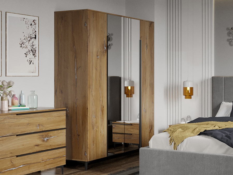 Set Mobila Dormitor Beverley tapitat cu oglinda Un dormitor matrimonial ce are un aspect modern , imbinand finisajul Flagstaff Oak cu manerele si picioarele negre , creand un ambient cald si primitor. Dulapul cu 4 usi are dimensiuni generoase. Restul corpurilor de mobilier, comoda si noptierele, ofera la randul lor spatii de depozitare in completarea dulapului, prin sertare . Oglinda, pe langa utilitatea sa de baza, da senzatia de camera marita si spatioasa. Corpuri Set Mobila Dormitor Beverley tapitat cu oglinda Dulap cu oglinda – L 165 x A 52 x H 204cm – Schita Montaj Compartimentat cu 8 polite si o bara de umerase. Pat Adam Fix Tapitat Gri – L 152/172/192 x A 220 x H 109,5cm– Schita Montaj Comoda – L 111 x A 40 x H 80cm – Schita Montaj Cu 3 sertare. Set noptiere – L 51 x A 35 x H 44cm – Schita Montaj Fiecare cu cate doua sertare. Corp sertare (optional) – L 80 x A 37 x H 34cm – Schita Montaj Cu doua sertare. Livrare Gratuita prin flota proprie Suntem producatori de mobilier Toate corpurile au o garantie de 2 ani Video de prezentare familie Videoul de prezentare poate contine mai multe corpuri de mobilier sau mai putine in comparatie cu produsul de pe aceasta pagina. Scopul acestui video este de a detalia aspectul materialelor, accesoriilor cat si a familiei din care face parte. Pat Tapitat Adam cu somiera fixa Acest  Pat tapitat Adam   cu somiera fixa  se remarca prin designul sau modern, elegant si mentine linia de design de la Set Mobila Dormitor Toronto tapitat cu oglinda. Suportul inclus  este realizat din  lemn stratificat  cu  lamele  din lemn . Patul are picioruse de 3 cm , care permit aerului sa circule, astfel se ventileaza salteaua si spatiul din cadrul patului.  Stofa Gri Falcone 21 are o structura fina, ce da un efect clar in doua tonuri cand este cutat sau curbat. Aceasta are durabilitate ridicata si aplicare versatila. Materialul din spatele tabliei este diferit de tapiteria din fata. Este o tesatura neagra, cu o textura diferita. Va recomandam sa plasati patul cu tablia la perete, asa cum se poate observa in pozele prezentate. Salteaua nu este inclusa, dimensiunea de saltea compatibila cu acest pat este de 140 x 200, 160×200 , 180 x 200 cm (in functie de dimensiunea de pat aleasa). Din inaltimea saltelei, 6 cm  vor intra  in cadrul patului . Dimensiuni: Latime: 152 / 172 / 192 cm (in functie de dimensiunea aleasa) Adancime: 215.5 cm Inaltime capat mare: 114 cm Inaltime capat mic: 36.5 cm Greutate maxima recomandata: 300kg Dimensiunile pot oscila intre ± 20 mm intrucat este vorba de un produs tapitat . Set Mobila Dormitor Beverley tapitat cu oglinda O solutie ideala pentru un dormitor matrimonial. Corpurile din Set Mobila Dormitor Beverley tapitat cu oglinda  sunt realizate din PAL melaminat de 16 mm cu finisaj Flagstaff Oak , care creeaza un spatiu primitor si un ambient cald. Cantul aplicat este unul de 0,6 ce le permite muchiilor sa fie placute la atingere  fiind finisate si atent retusate. Pretul afisat nu include alte accesorii sau obiecte de decor (tablouri, elemente de iluminat, asternuturi, covor etc.) Produsul se livreaza demontat si este insotit de accesorii si instructiuni de asamblare. Dimensiunile sunt exprimate in cm si pot oscila intre ± 10 mm.