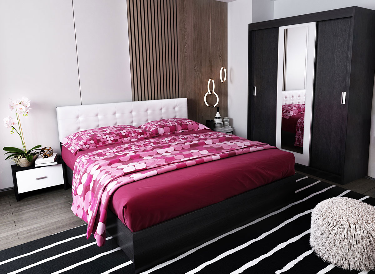 Set Mobila Dormitor Bingo F Tapitat Alb 4 piese face parte din familia Bingo, acest set de mobila este format din mai multe piese la un pret avantajos. Corpurile sunt construite din PAL melaminat de 16mm cu finisaj Ferrara si Alb Mat, o textura similara lemnului, care creeaza un contrast rafinat si un ambient placut. Dimensiunea patului este la alegere 140×200, 160×200, 180×200 (spatiul pentru saltea) iar spatarul poate fi comandat netapitat, tapitat alb sau wenge . Cantul aplicat este unul de 0,6 care le permite muchiilor sa fie plăcute la atingere fiind finisate si atent retusate. Corpuri Set Mobila Dormitor Bingo F Tapitat Alb – 4 piese Dulap 3U glisante – L 153 x A 55 x H 194.8cm – Schita Montaj Compartimentat cu 7 polite si bara de umerase, cu oglinda aplicata pe usa. Pat matrimonial Tapitat – L 146, 166, 186 x A 203.2 x H 92cm – Schita Pat 140 / Schita Pat 160 / Schita Pat 180 Suport de saltea inclus. Sustine pana la 300kg. Set noptiere – L 44.4 x A 22.3 x H 32.5cm – Schita Montaj Cu usa si spatiu generos. Livrare Gratuita prin flota proprie Suntem producatori de mobilier Toate corpurile au o garantie de 2 ani Pat dormitor 140, 160 sau 180 x 200 Tapiteria poate fi alba sau wenge, la alegere. Patul matrimonial mentine linia de design al setului de dormitor Bingo F Tapitat Alb – 4 piese. Este rezistent cu sustinere in: repere de sustinere multiple 4 linii de sustinere pe latime si 3 pe lungime L-uri metalice pe colturi Latime: 203.2 cm Adancime: 186 cm sau 166 cm sau 146 cm (la alegere) Inaltime capat mare: 92 cm Inaltime capat mic: 34 cm Suport de saltea din pal brut inclus. Salteaua nu este inclusa! Bifati sus ca doriti. Saltea Compatibila 180×200 cm sau 160×200 cm sau 140×200 cm Atentie! Pretul afisat nu include salteaua si alte accesorii sau obiecte de decor (tablouri, elemente de iluminat, asternuturi, covor etc.) Dimensiunile pot oscila intre ± 10 mm. Produsul se livreaza demontat si este insotit de accesorii si instructiuni de asamblare.